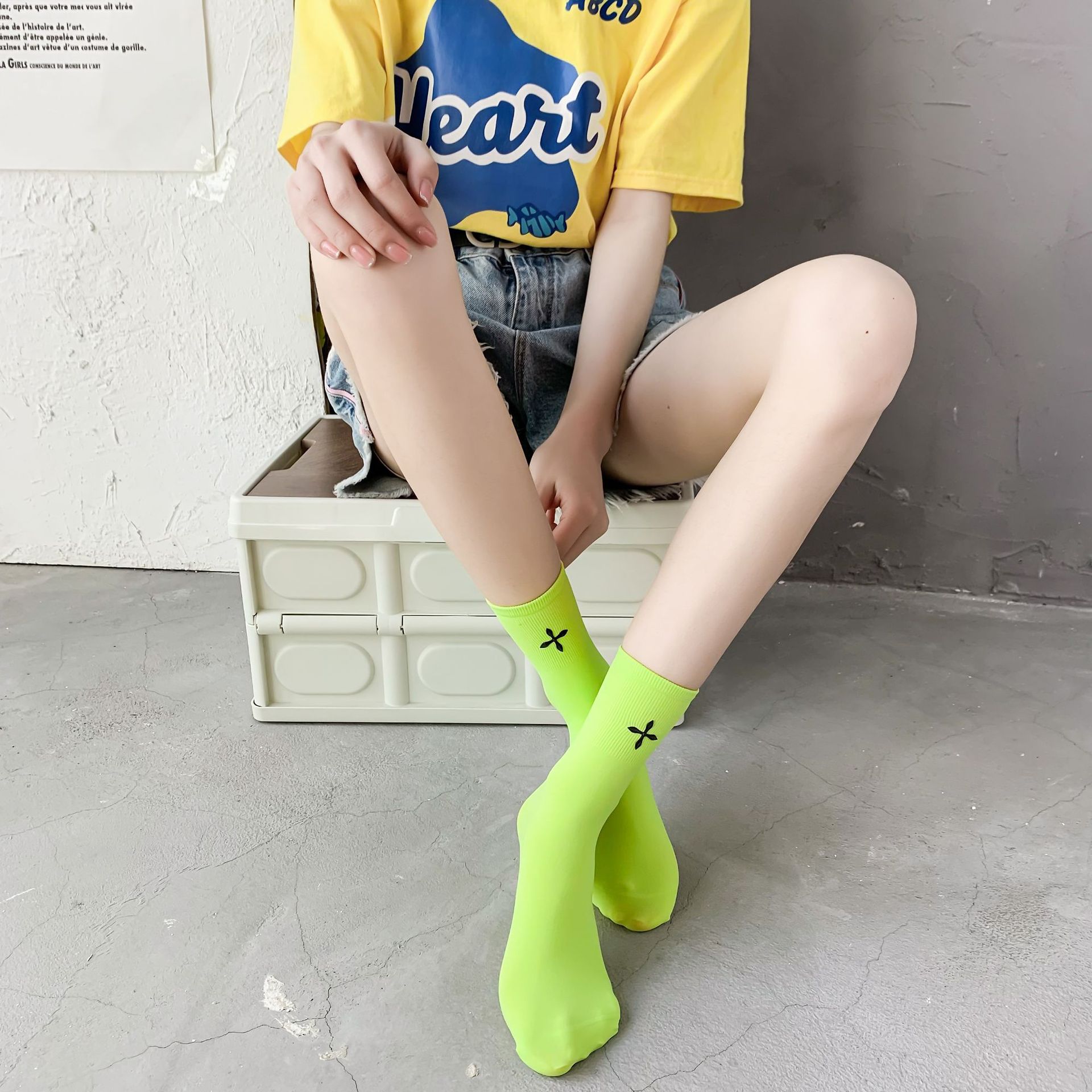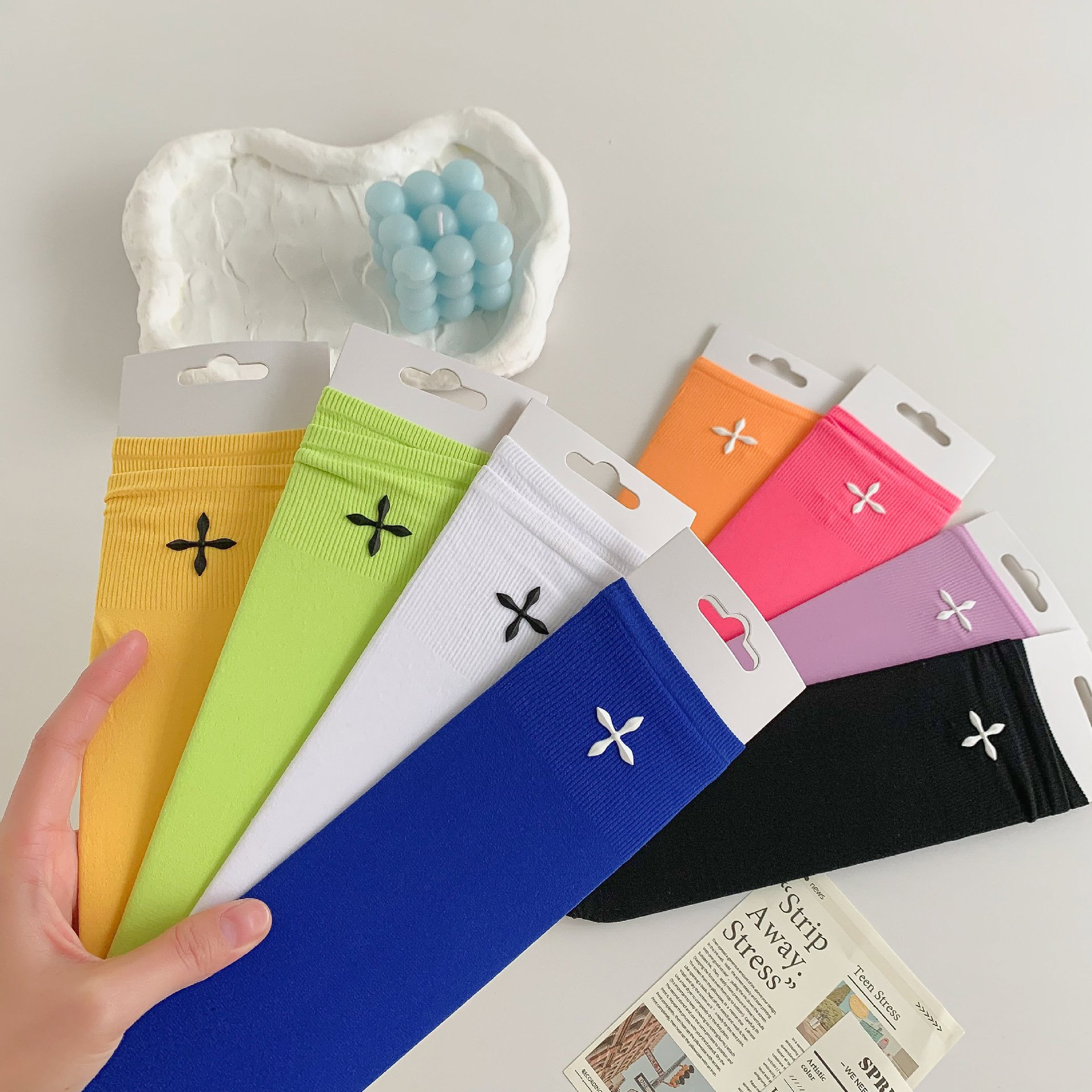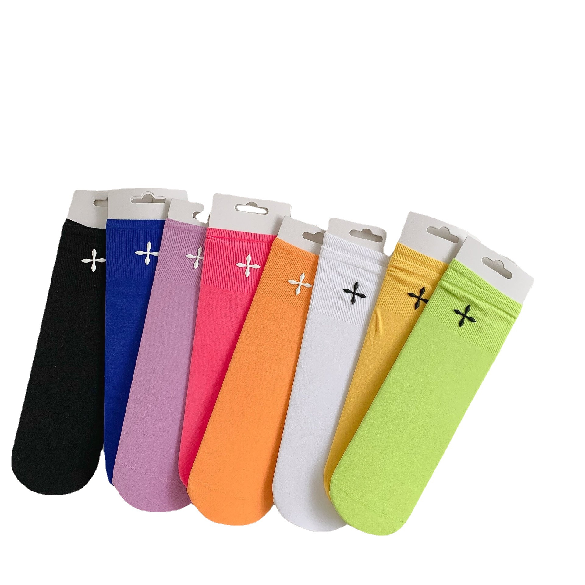 堆堆袜女袜冰冰袜中筒袜子女ins潮夏季纯色女士日系十字花糖果色