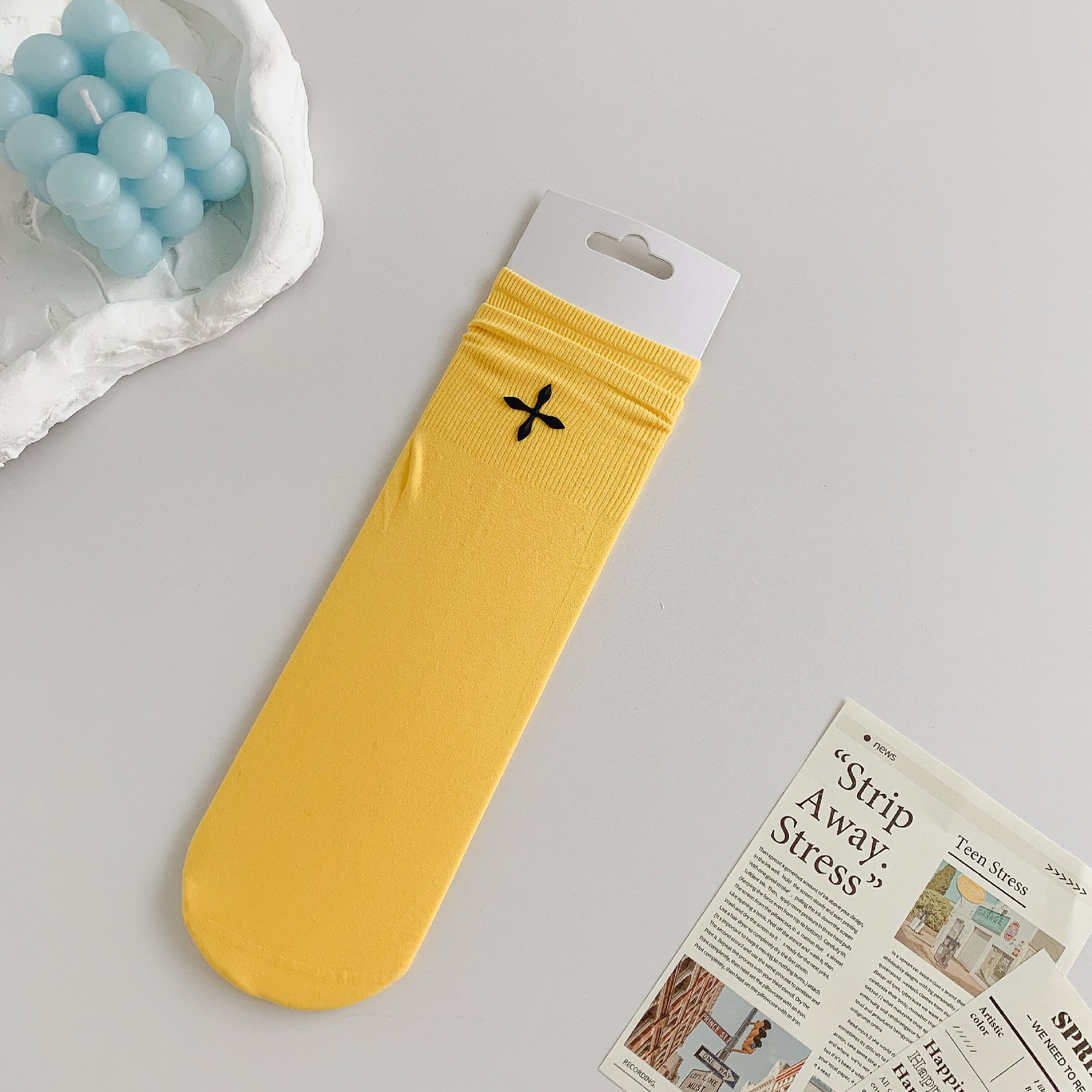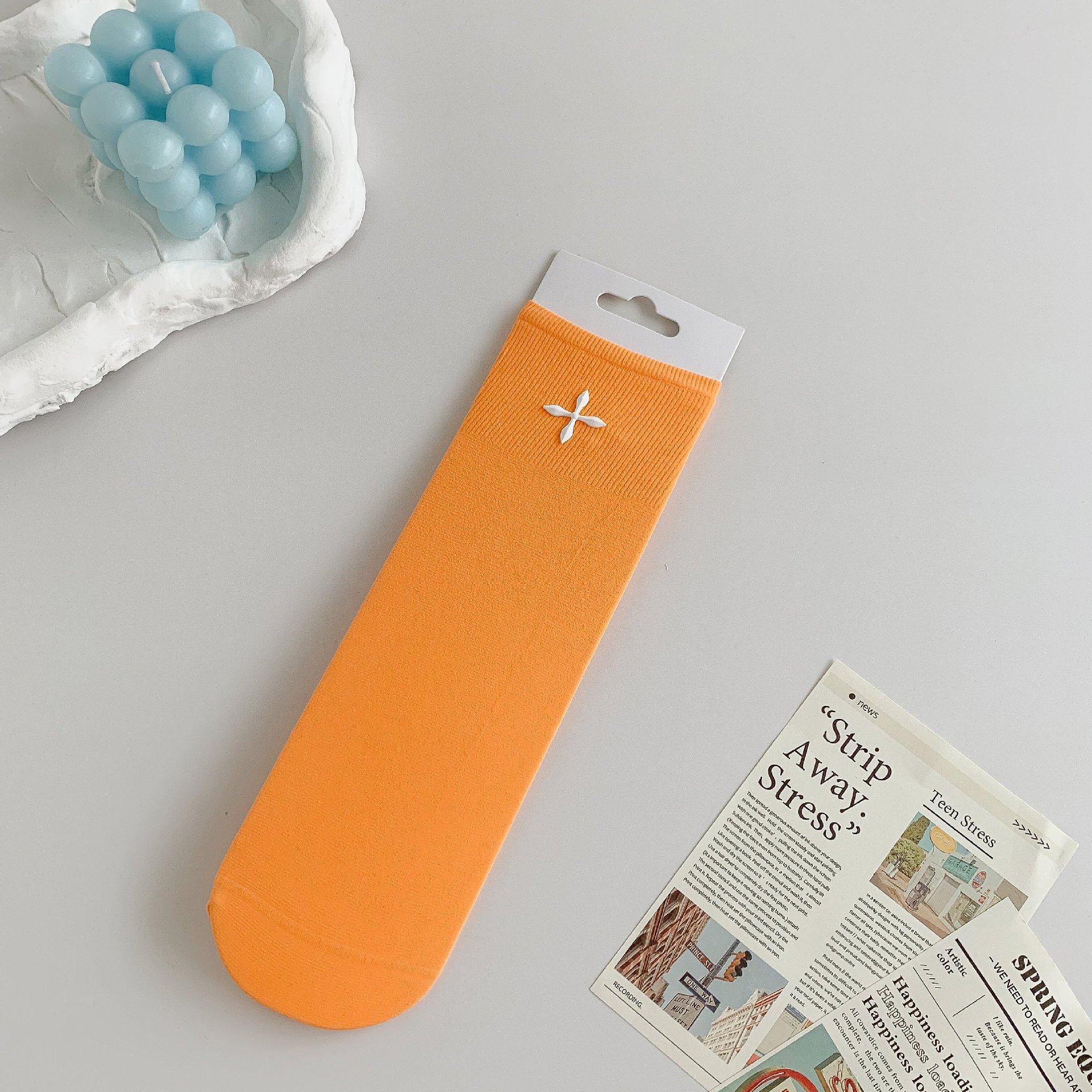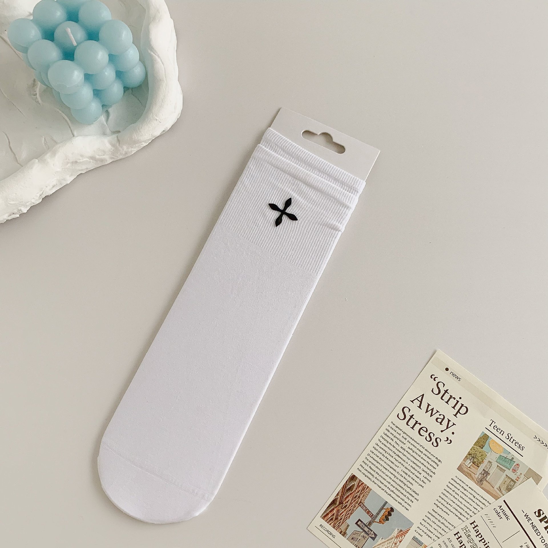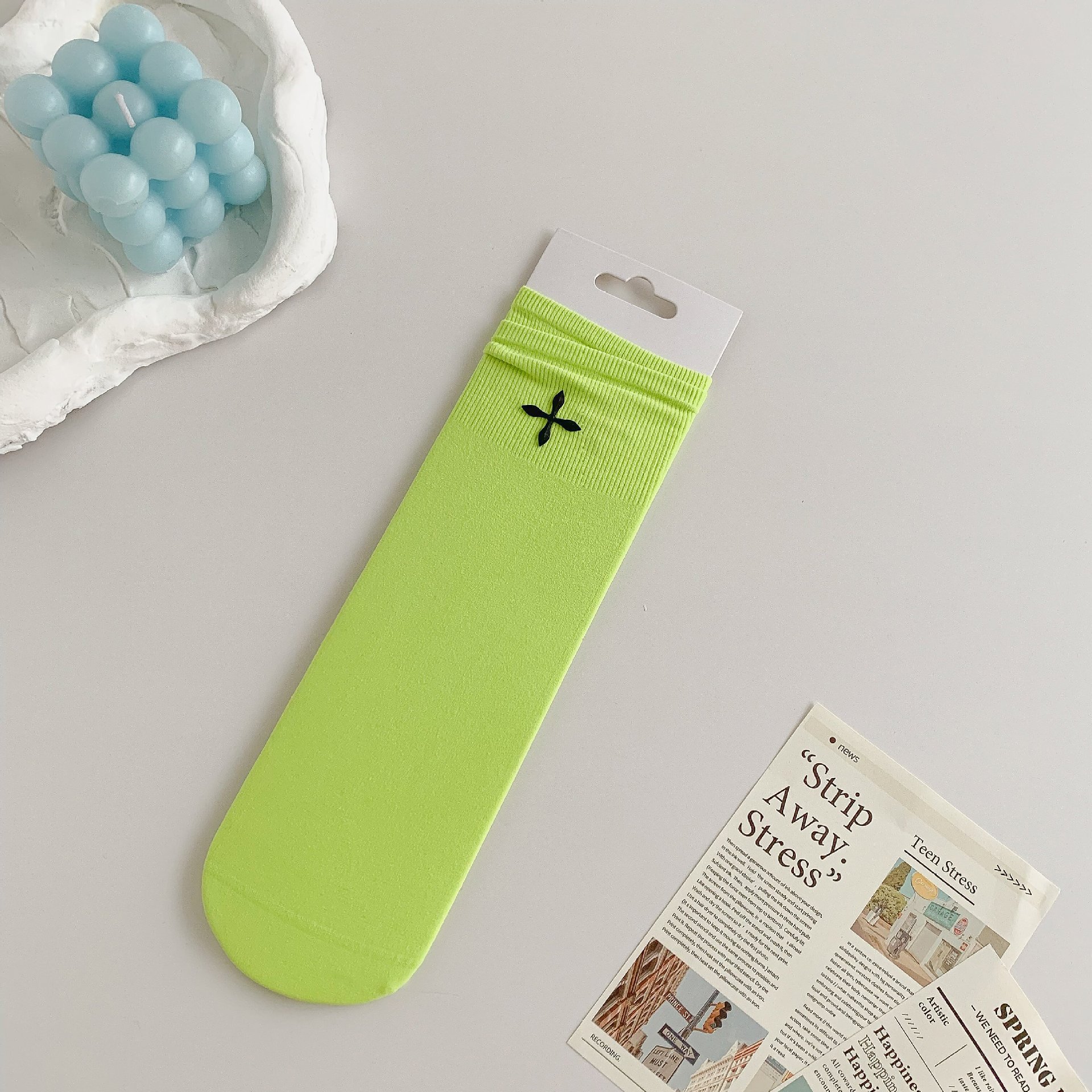 堆堆袜女袜冰冰袜中筒袜子女ins潮夏季纯色女士日系十字花糖果色