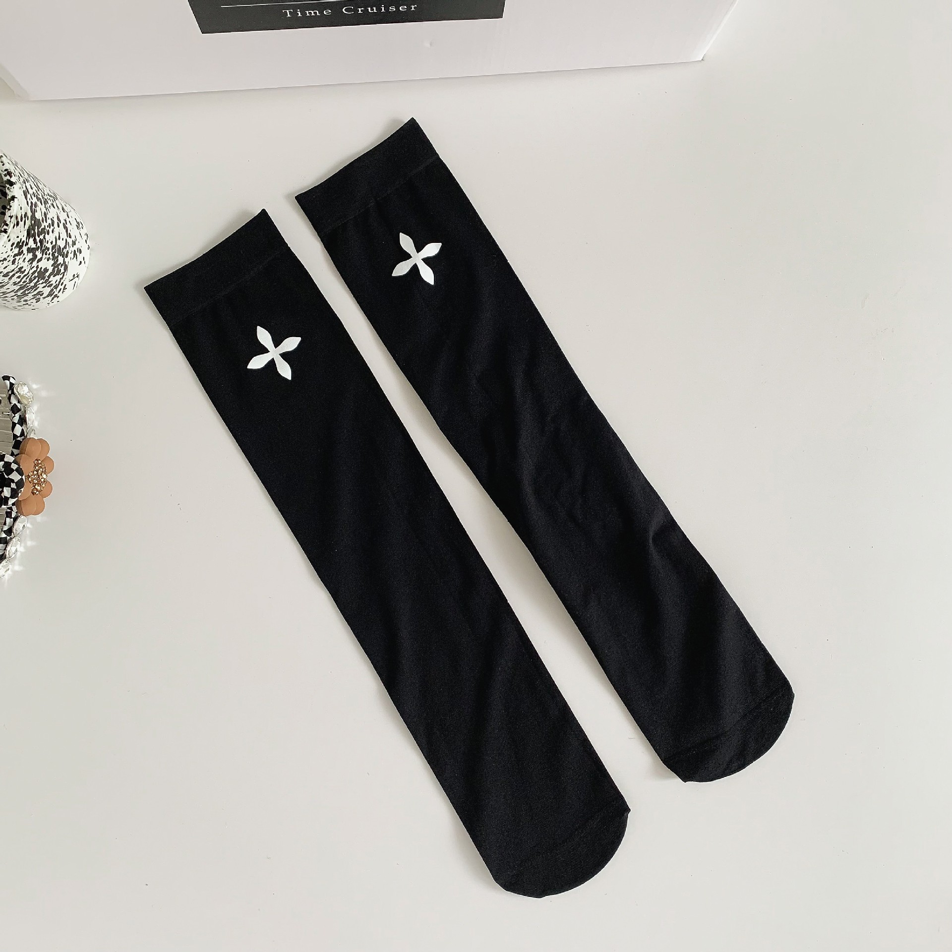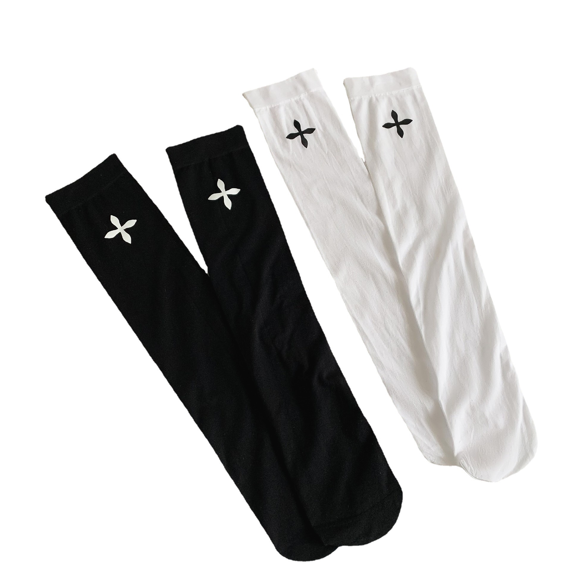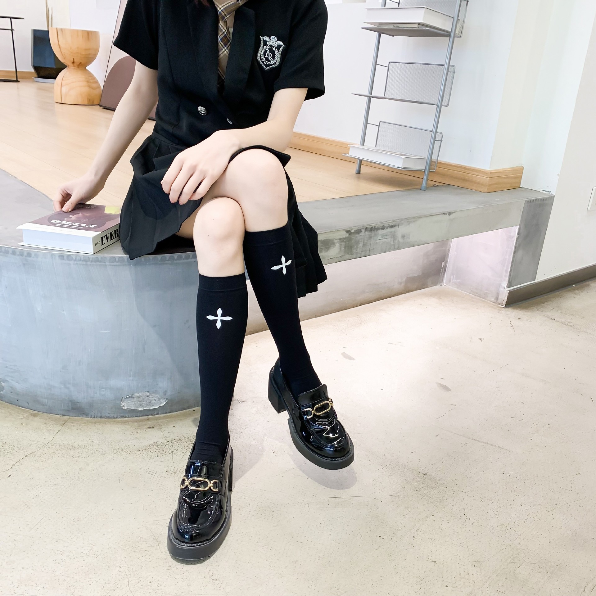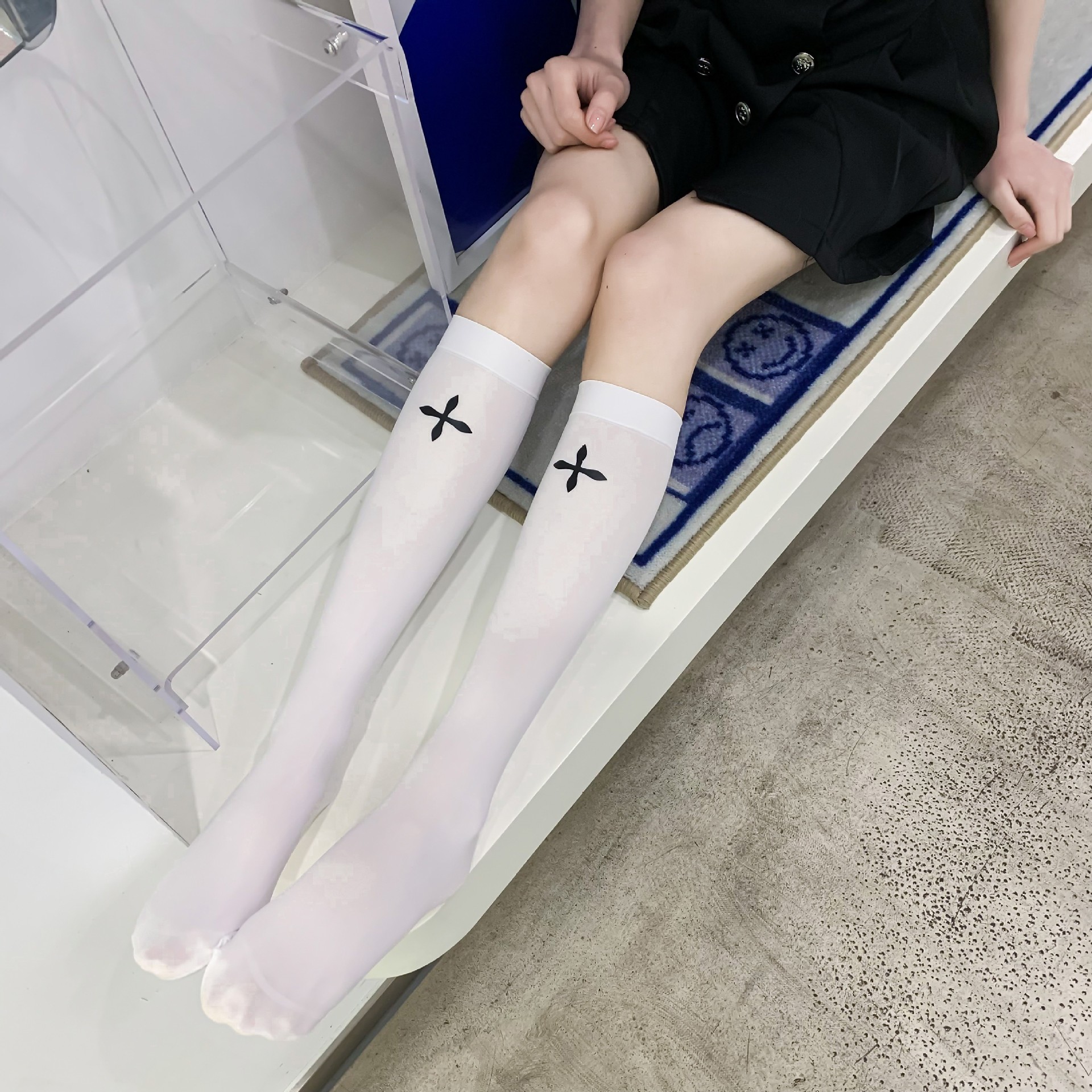 jk小腿袜女袜薄款丝袜长袜夏季夏天长筒瘦腿日系纯色冰冰袜十字心