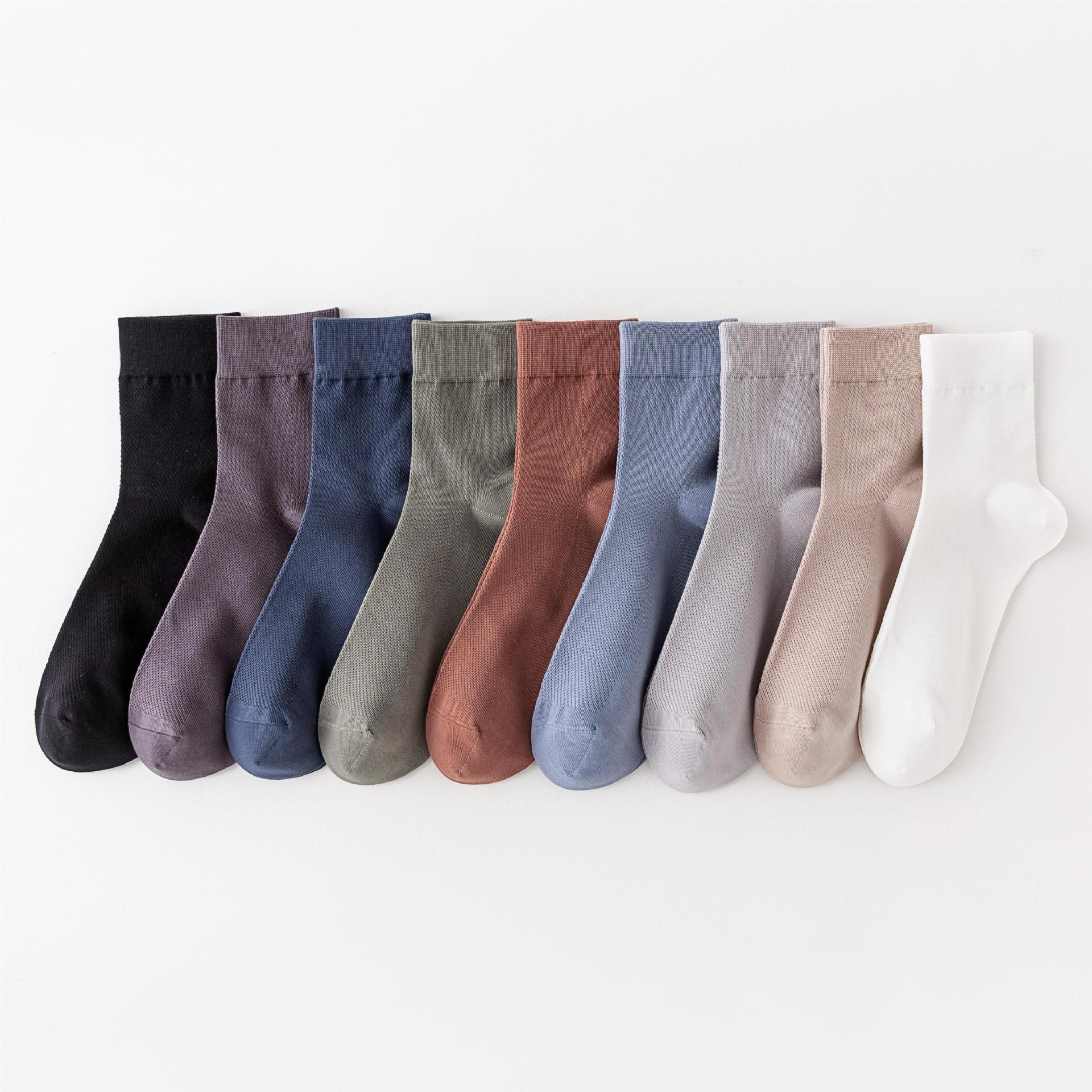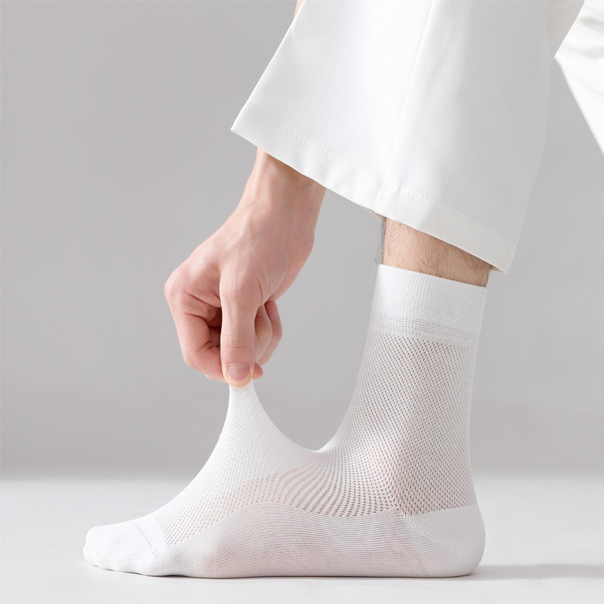 春款男袜纯棉袜子男士中筒袜薄款抗菌透气网眼防臭抗起球黑色袜子