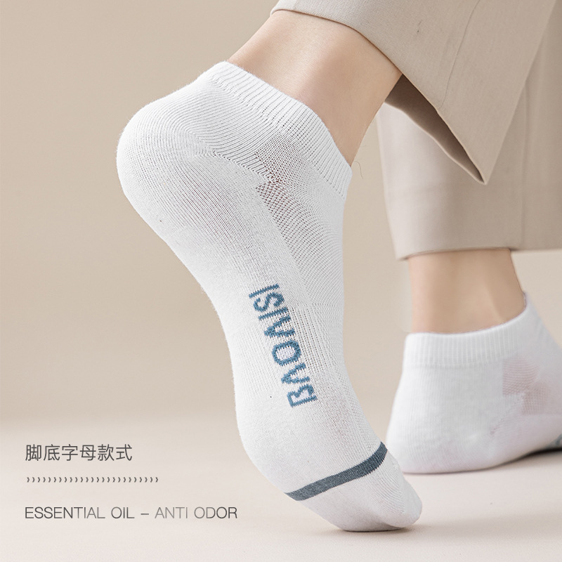 7A抗菌夏季袜子男纯棉短袜浅口男士短筒精油防臭吸汗不掉跟船袜