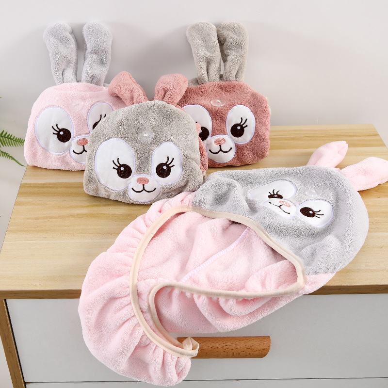 新款卡通可爱兔耳朵珊瑚绒包头干发帽吸水性好成人洗澡头巾浴帽