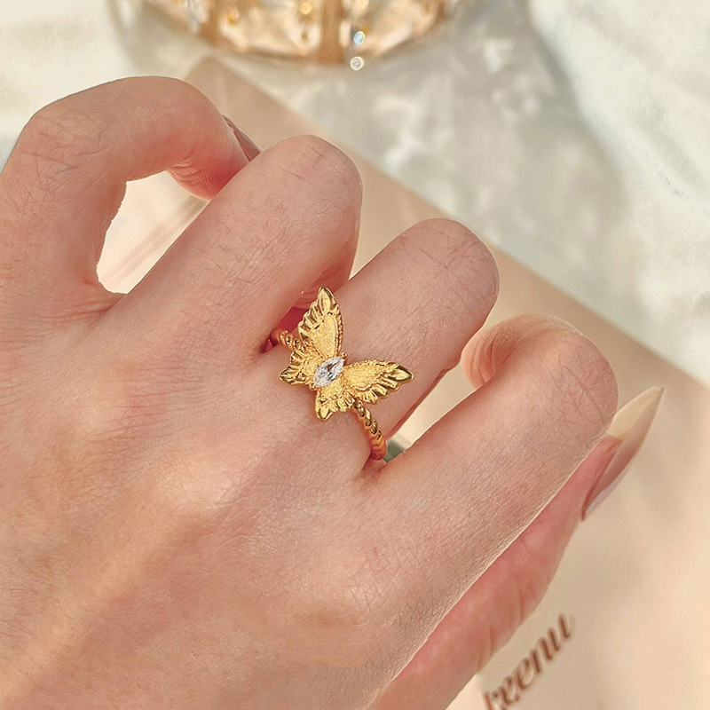小红书爆款幸福蝴蝶戒指新款古法梦幻拉丝高颜值设计气质百搭