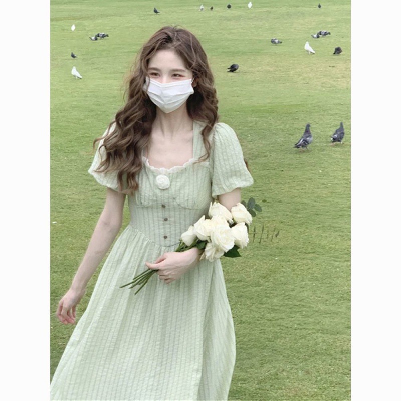 温柔风超仙森系绿色连衣裙女法式高级感初恋茶里茶气奶甜长裙夏季