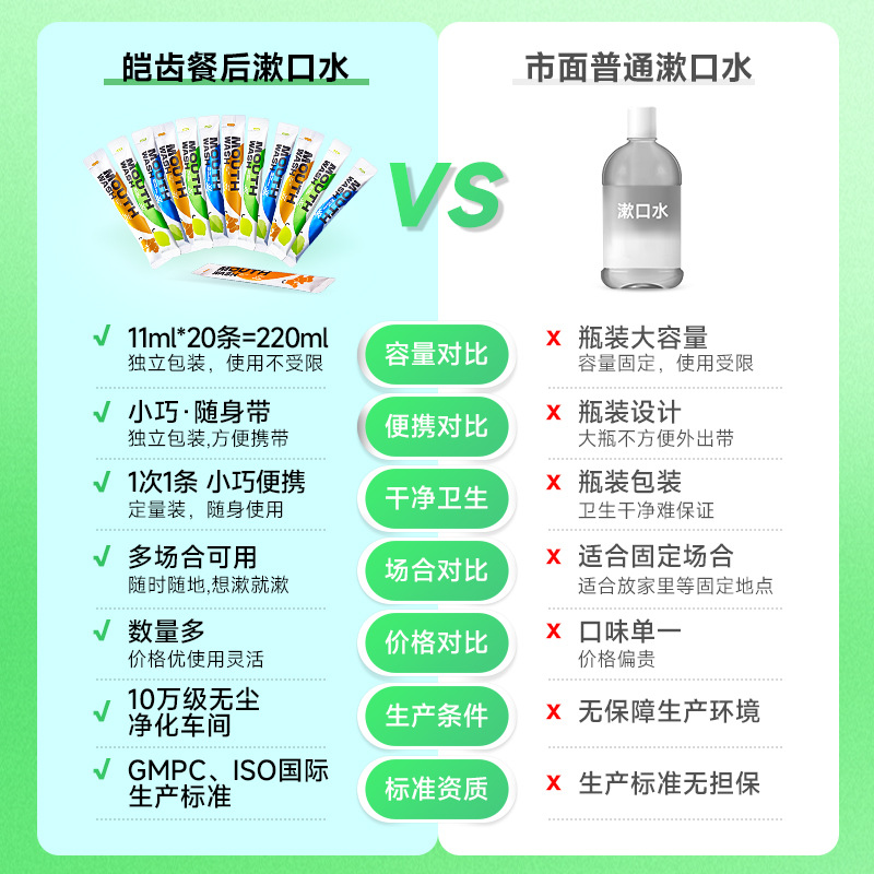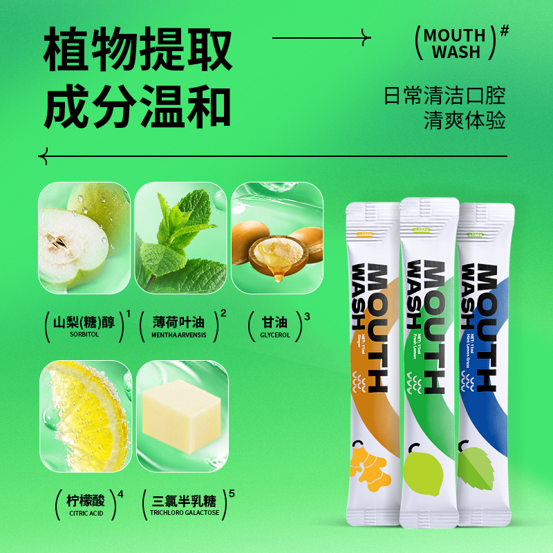 薄荷漱口水口气清新呵护牙齿餐后护理便携式清洁口腔漱口水