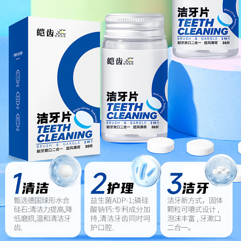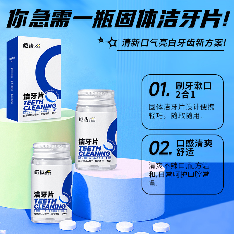 固体便携洁牙片 清新口气漱口粒清洁口腔洗漱合一牙膏片
