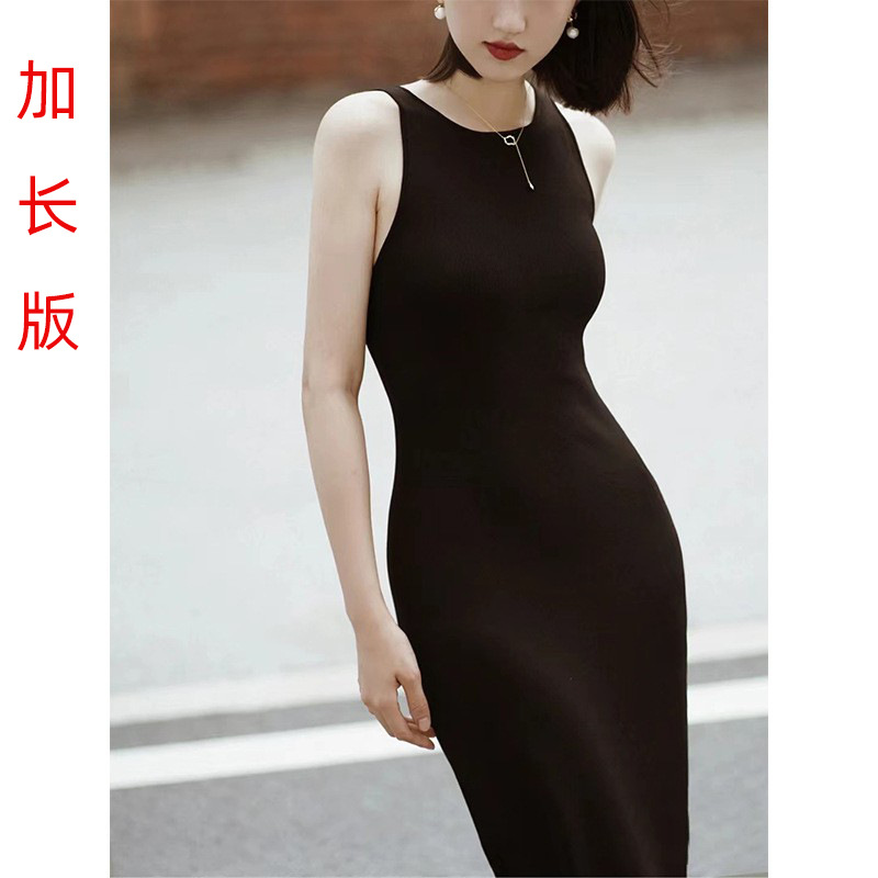 质感法式显瘦时尚夏季高个子COS风女装超长裙修身连衣裙