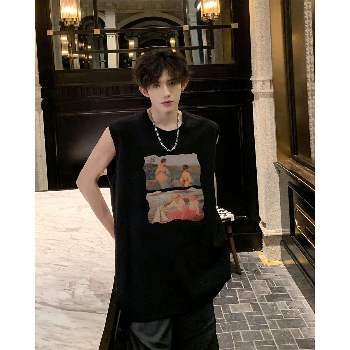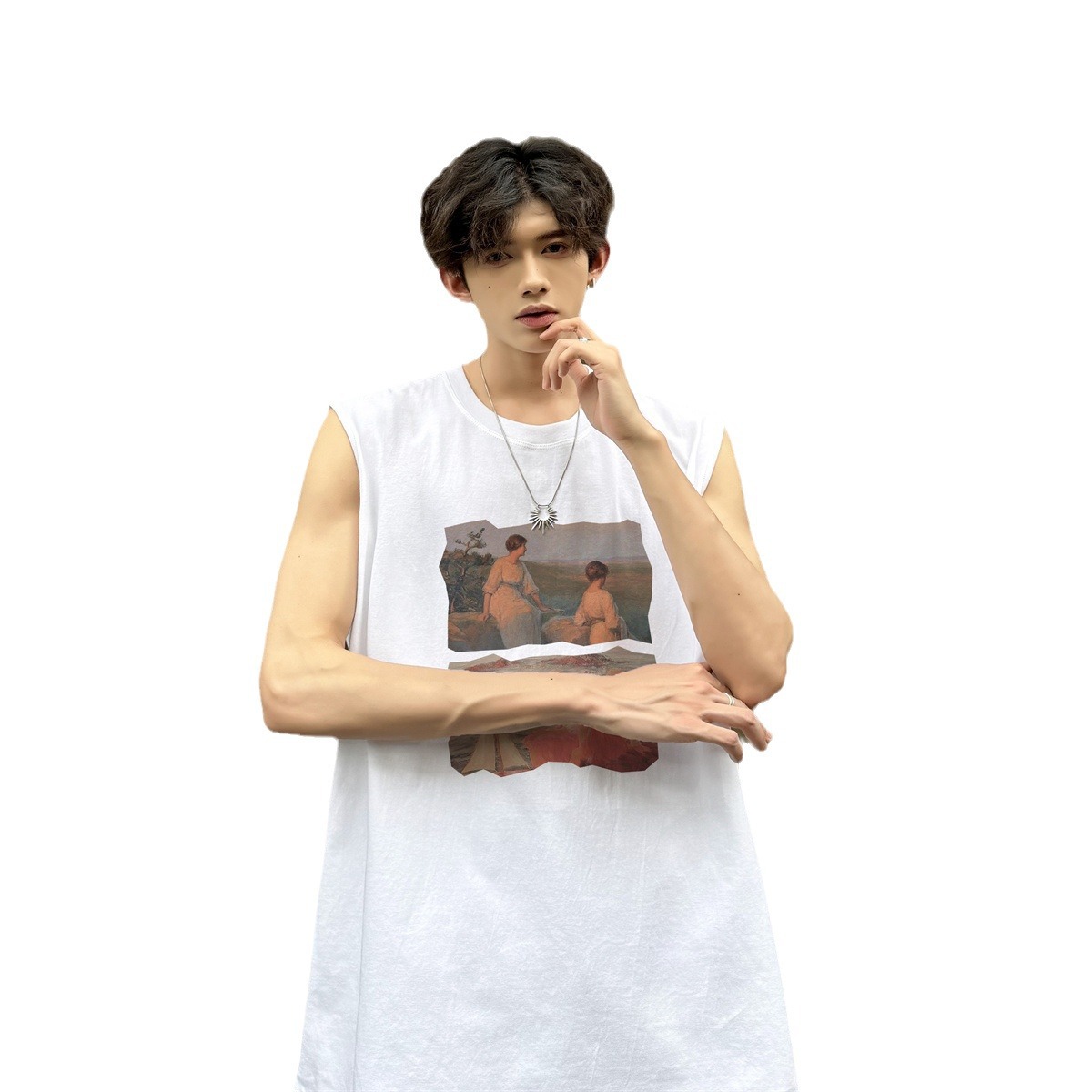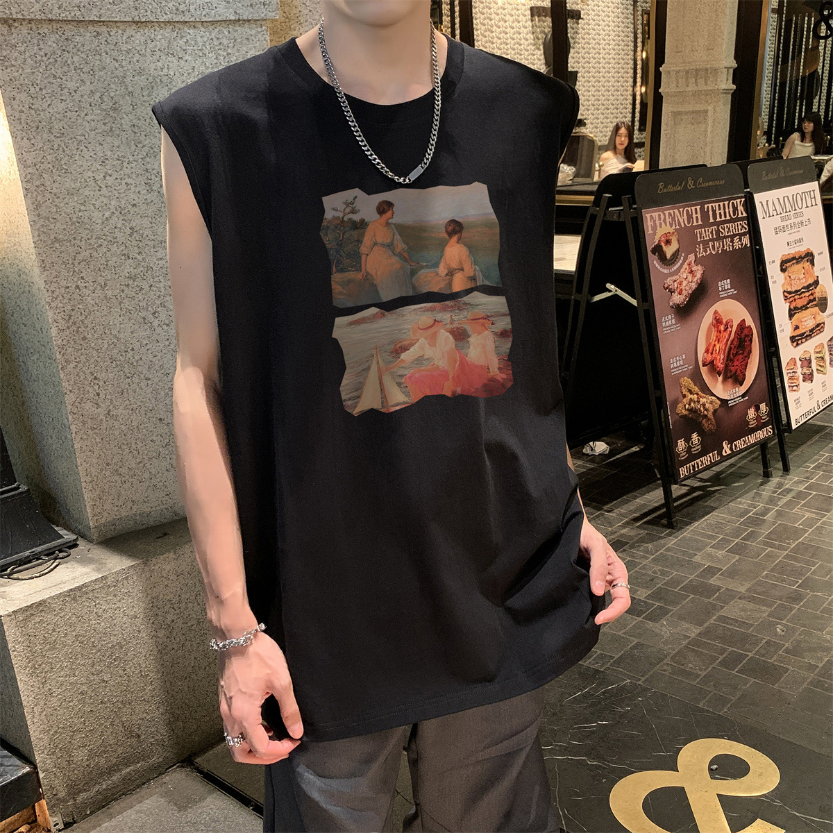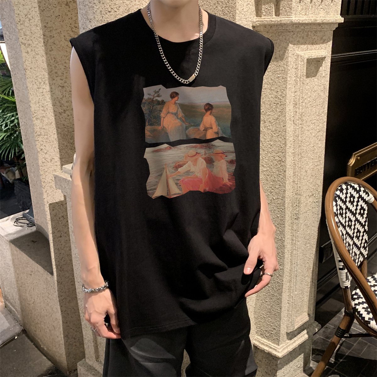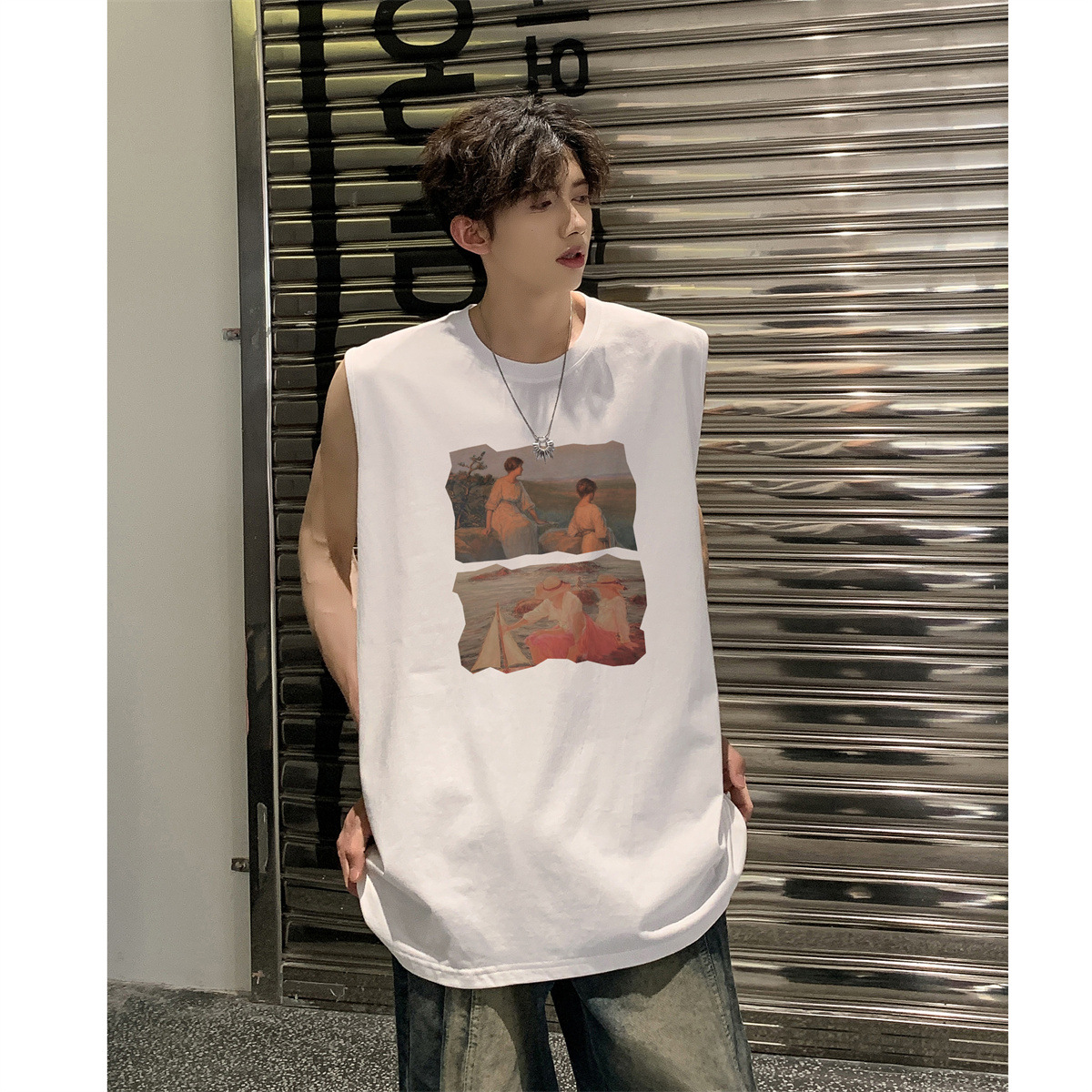 纯棉背心男士夏季潮流休闲宽松坎肩无袖汗衫上衣宽松无袖t恤大码
