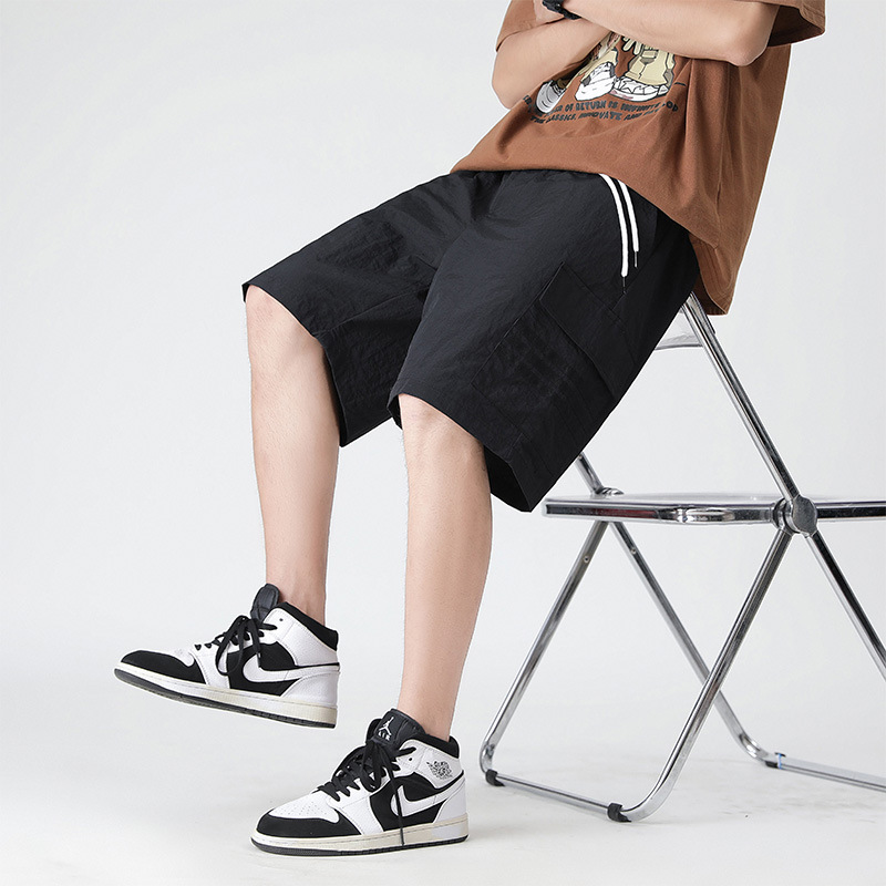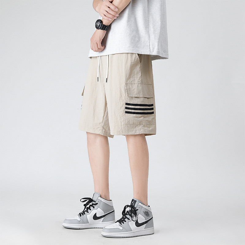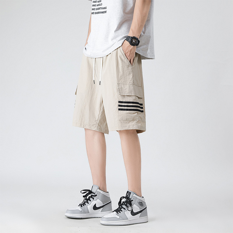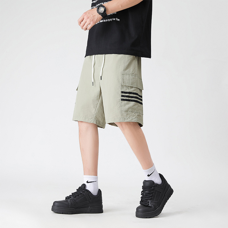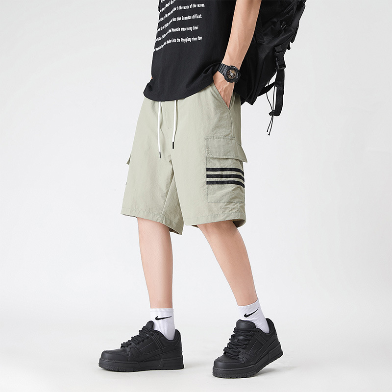 美式工装短裤男款夏季薄款透气运动休闲中裤潮牌宽松条纹五分裤子