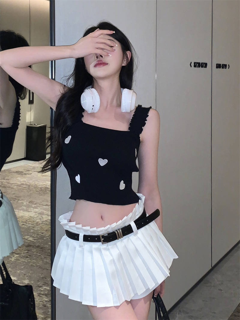 甜辣妹纯欲木耳边针织吊带背心女内搭外穿无袖设计感小众上衣