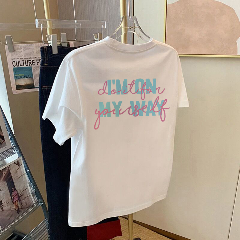 2025夏季新款纯棉白色短袖t恤女宽松百搭字母印花小个子减龄上衣
