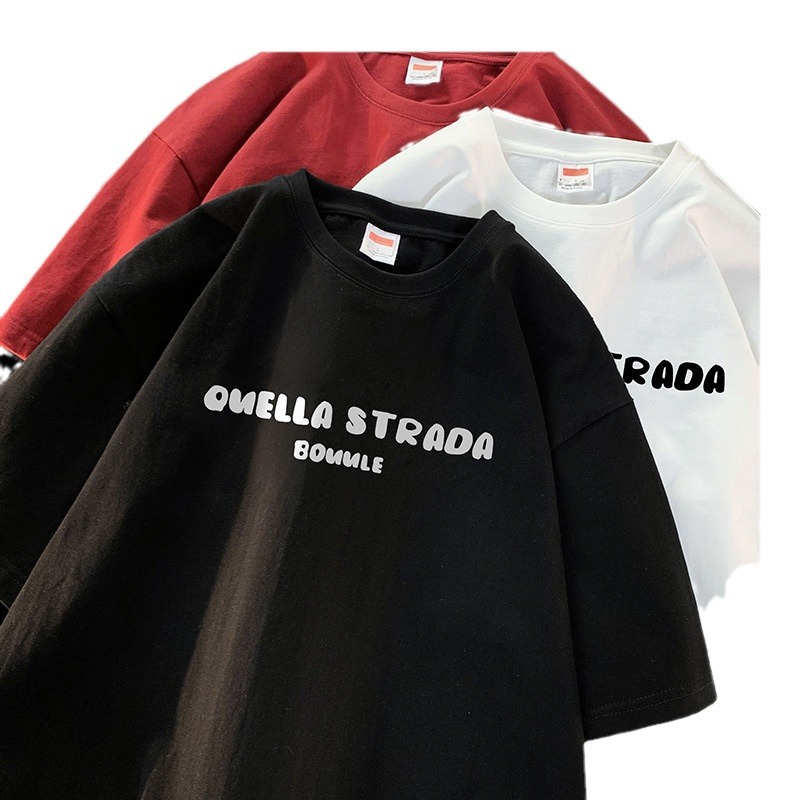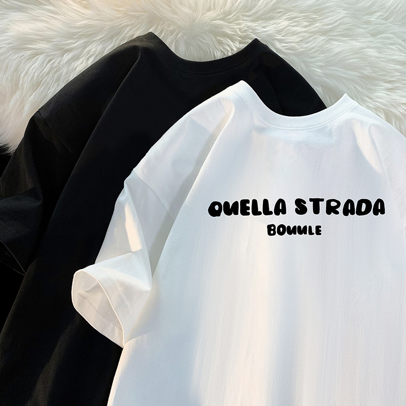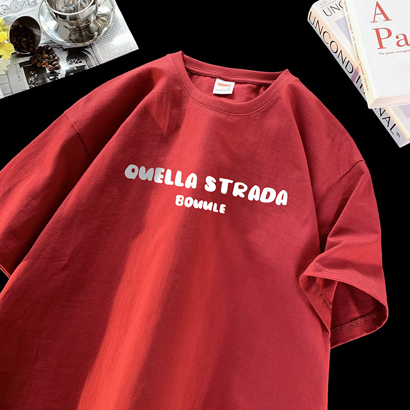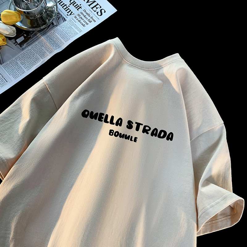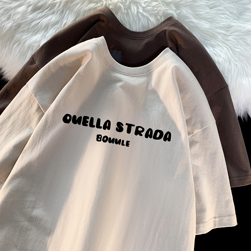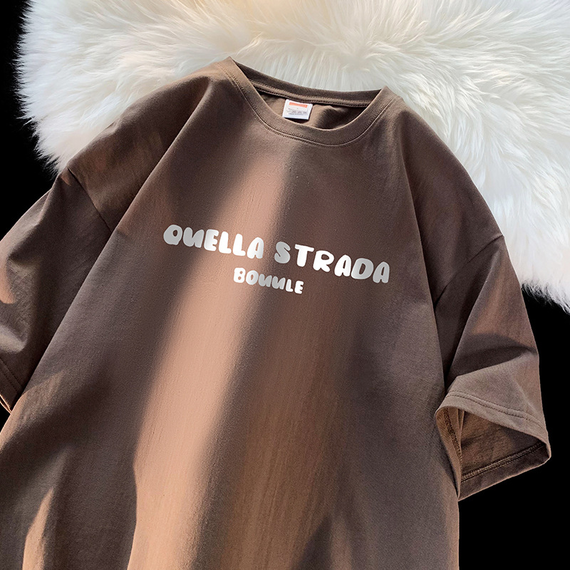 咖啡色大码短袖t恤男生夏季美式复古潮牌潮流休闲五分袖小众体恤