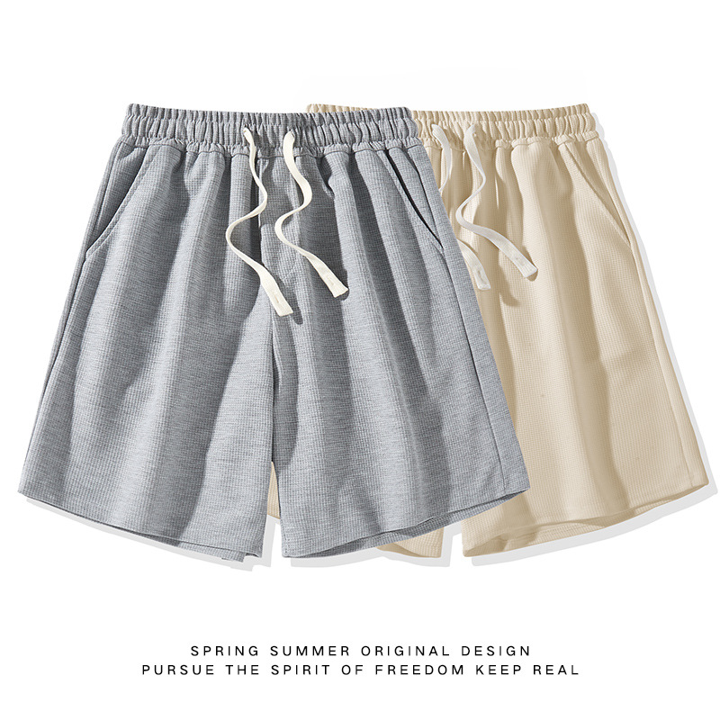 夏季纯色简约短裤男潮牌宽松bf休闲潮流松紧腰抽绳运动五分裤