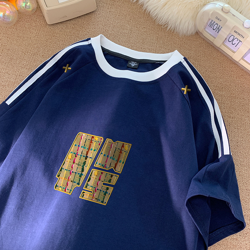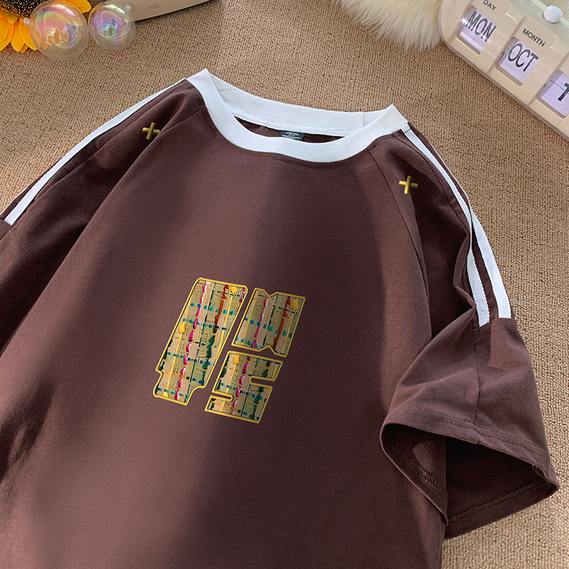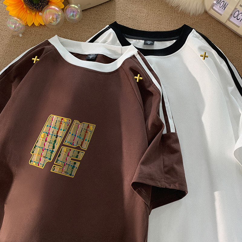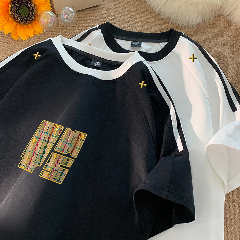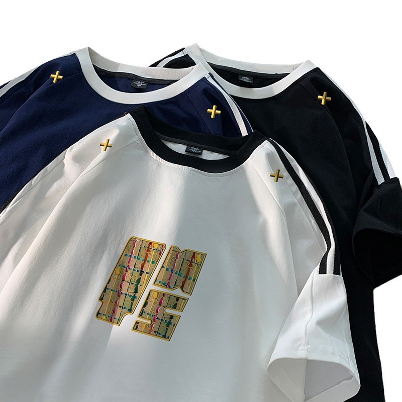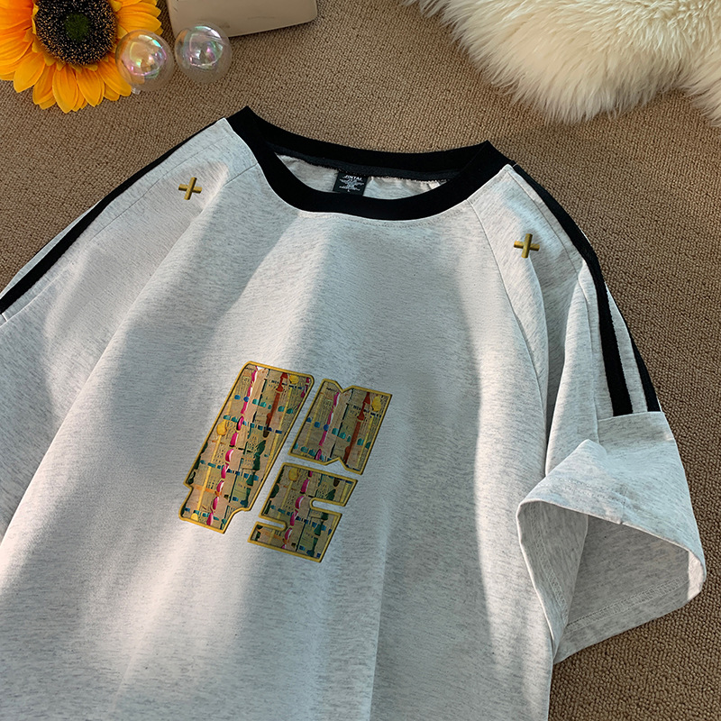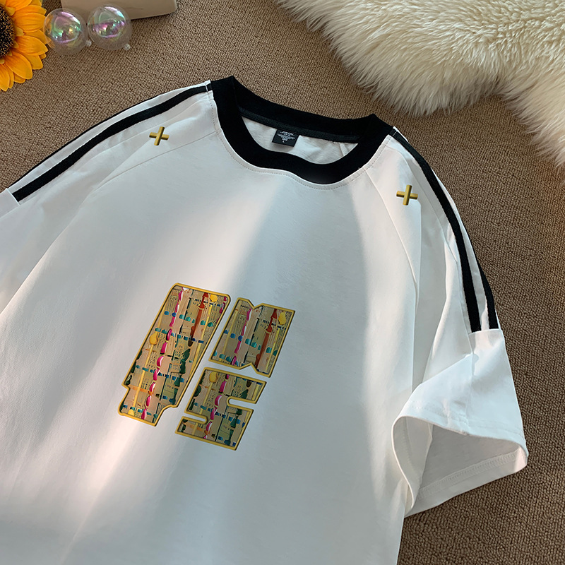 美式复古三条杠正肩短袖t恤男女夏季oversize宽松半袖体恤上衣