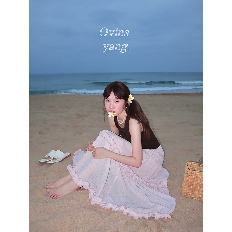 波点中长裙子半身裙女新款夏季甜美少女粉红色a字裙