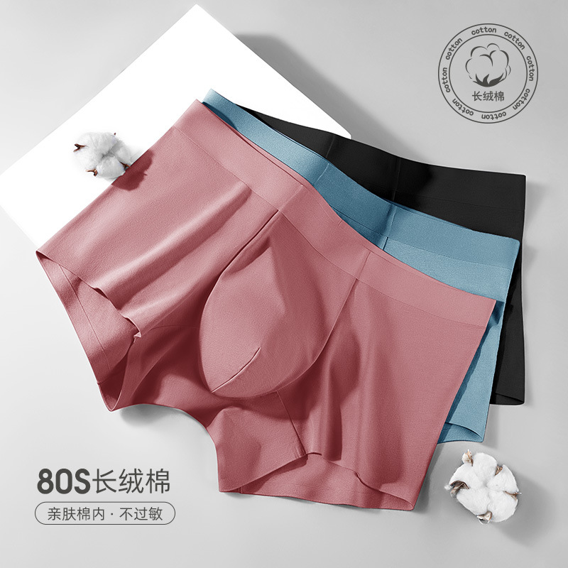 新款男士纯棉内裤80支长绒棉平角内裤男无痕纯色透气青年四角裤