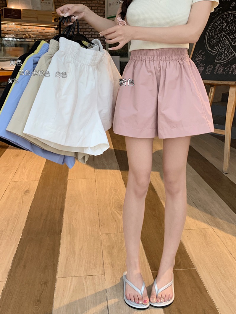 松紧腰纯色休闲裤直筒短裤女款夏季小个子宽松裤子高腰显瘦阔腿裤