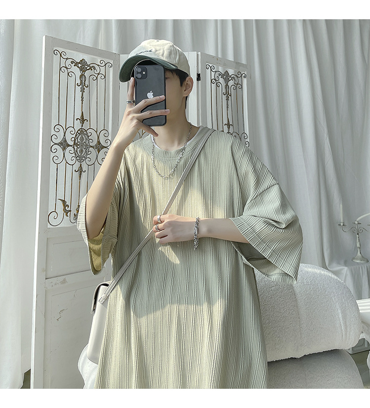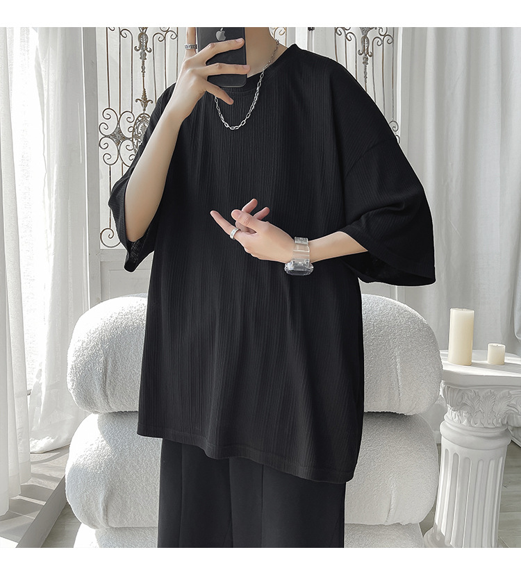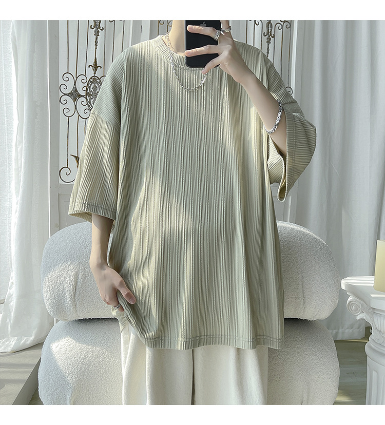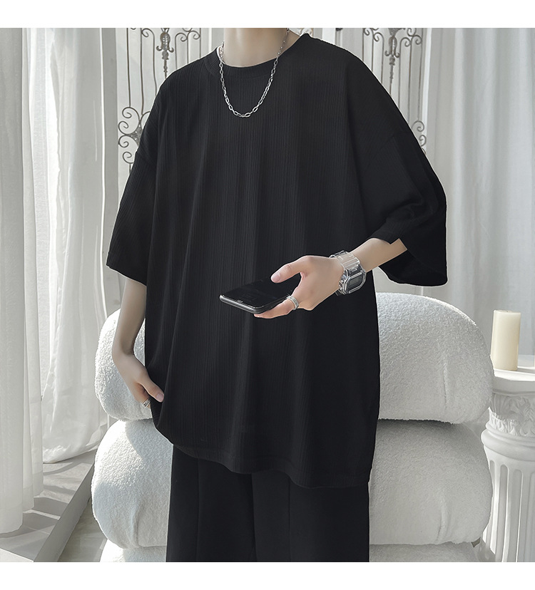 爆款华夫格短袖t恤男夏季新款潮流圆领半袖上衣宽松五分袖体恤衫