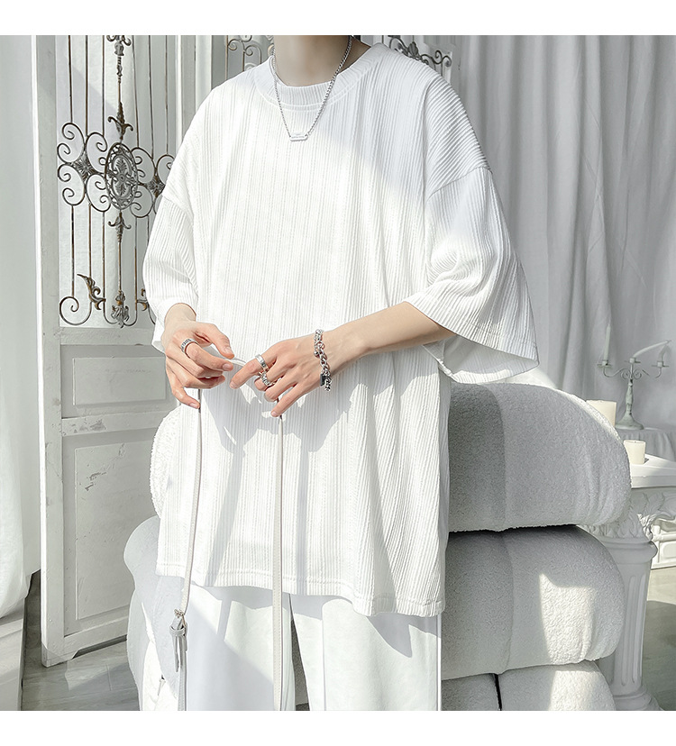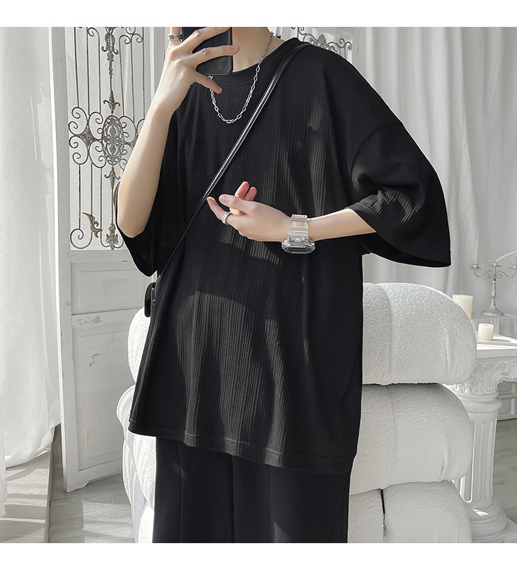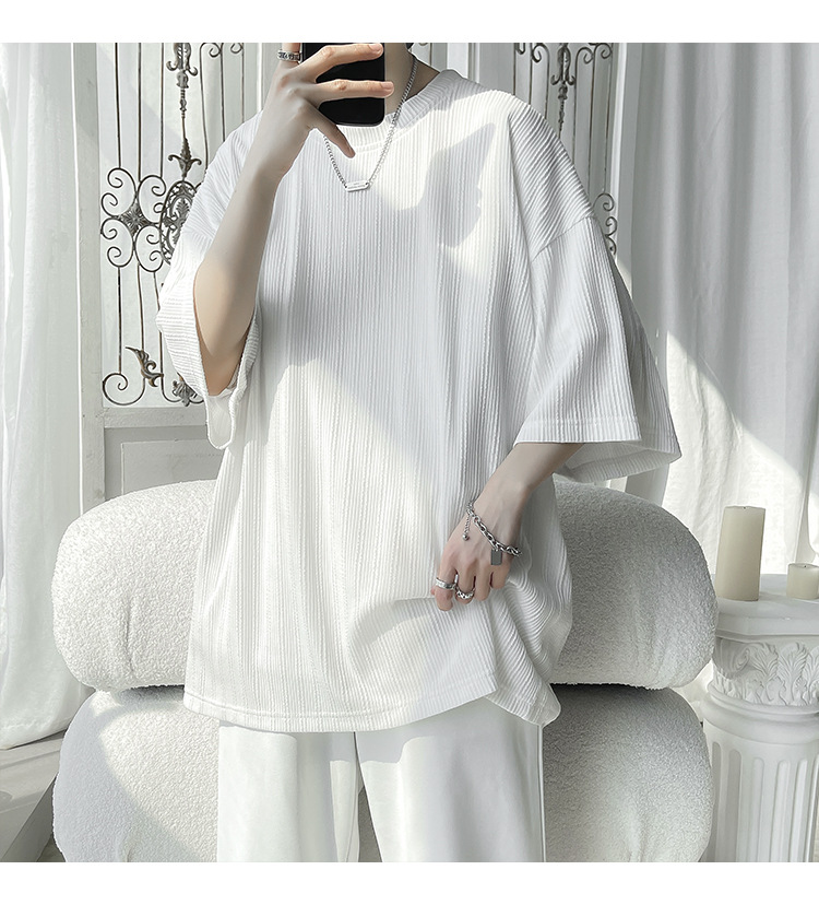 新潮优品夏季新款高级感休闲短袖T恤男垂感肌理宽松半袖体恤上衣