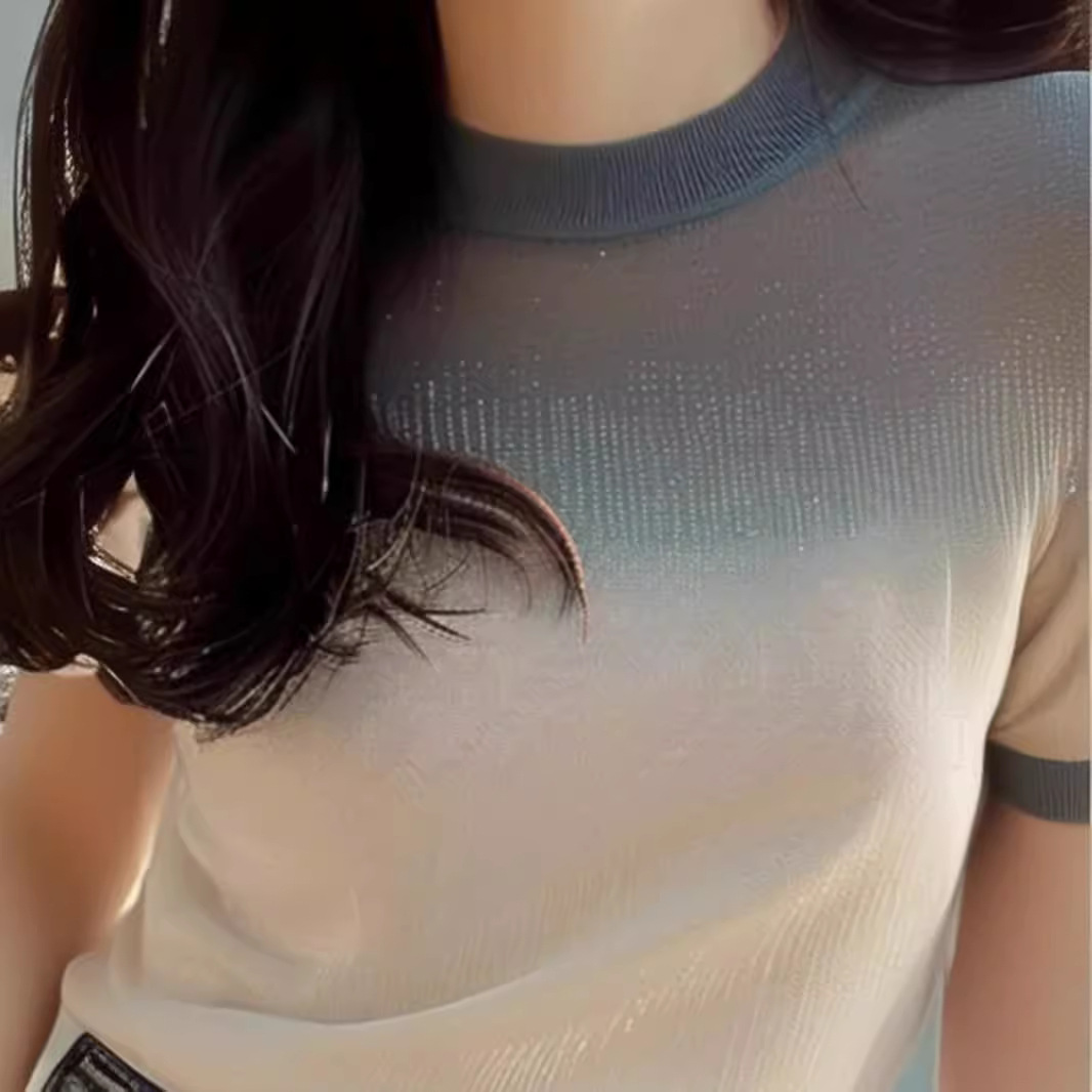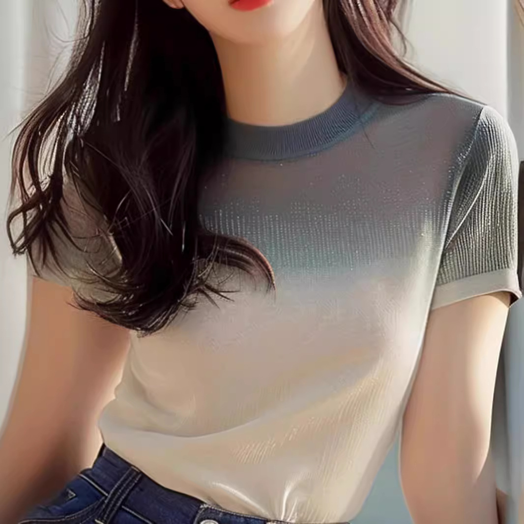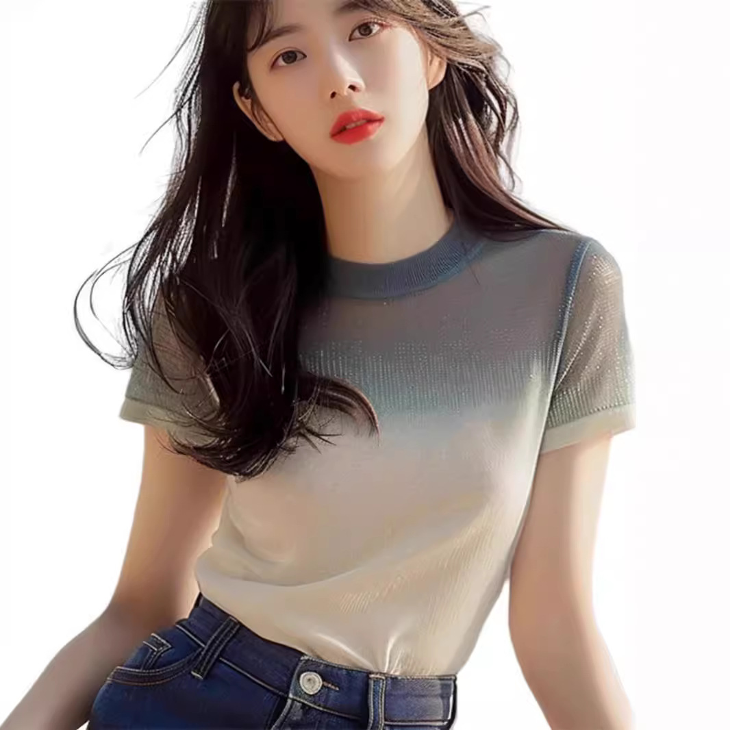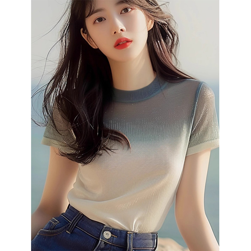 夏季短袖扎染t恤年新爆款冰丝小衫设计感女装小众渐变色上衣
