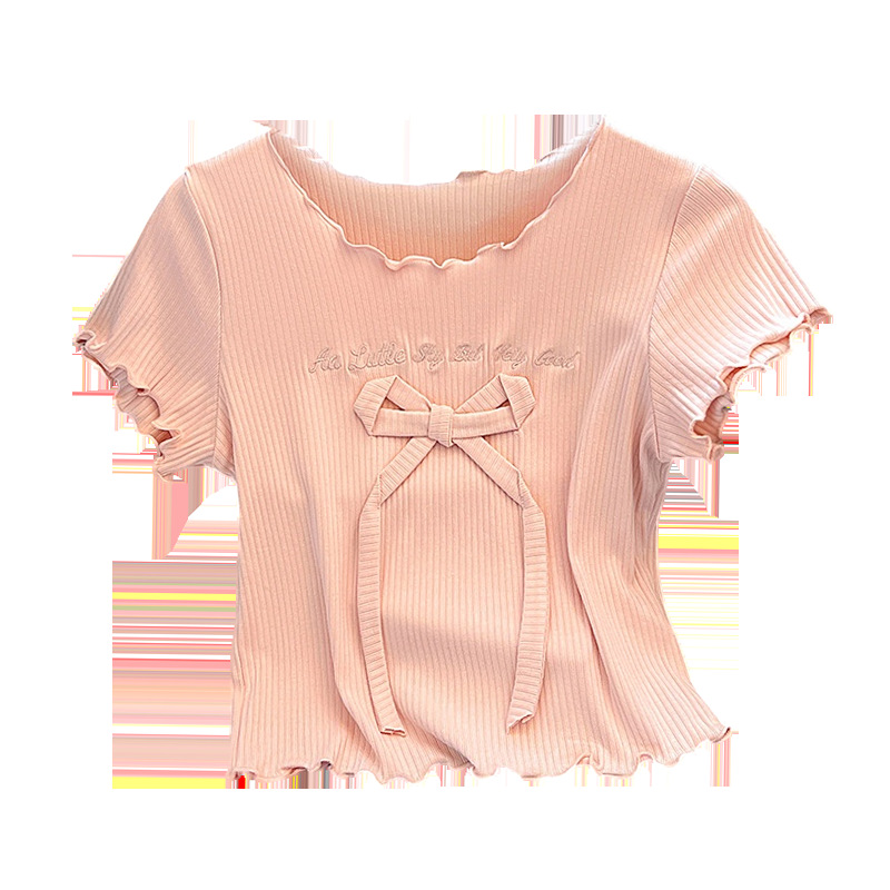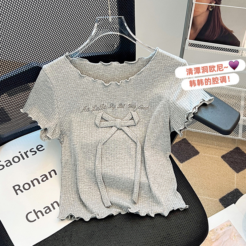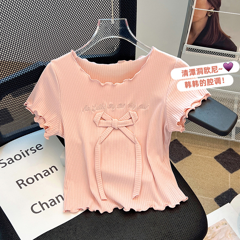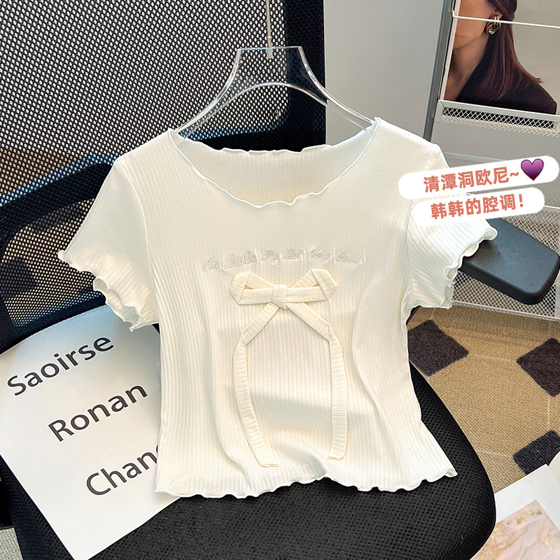 蝴蝶结短袖t恤女夏季新款设计感小个子甜酷修身正肩短款上衣