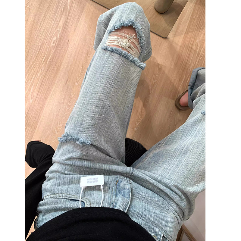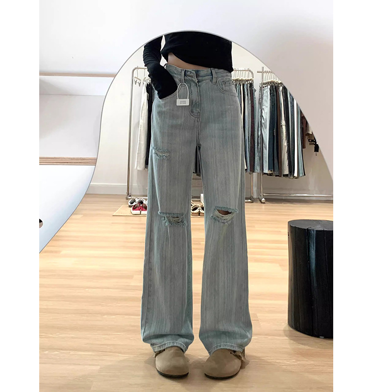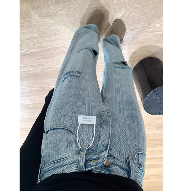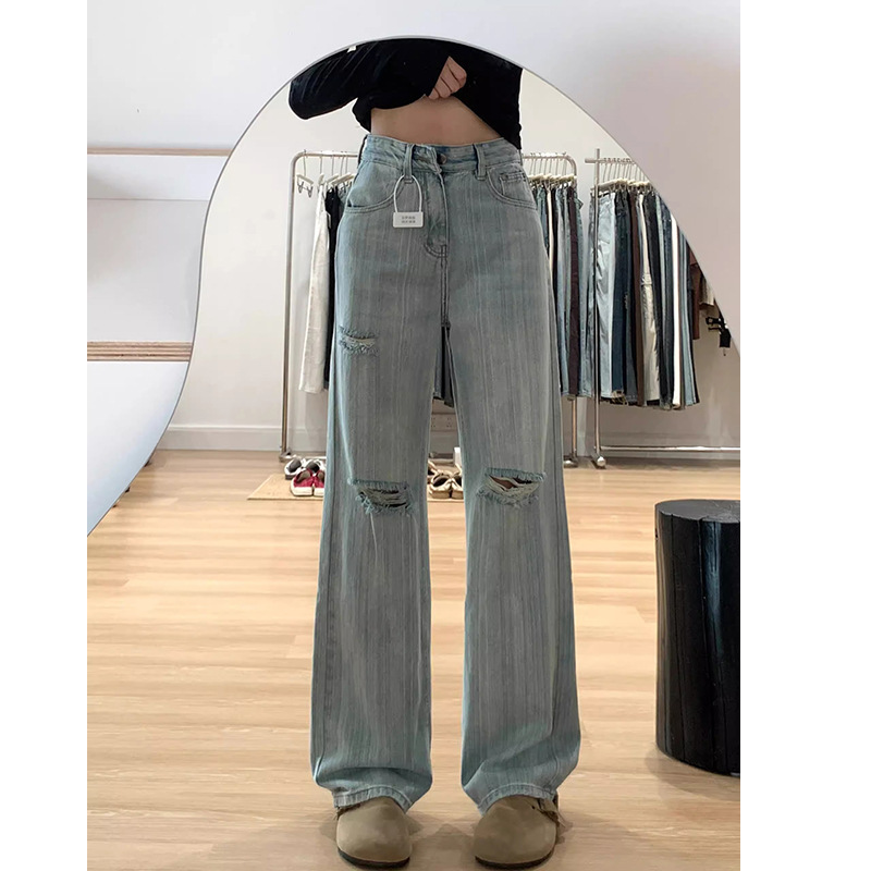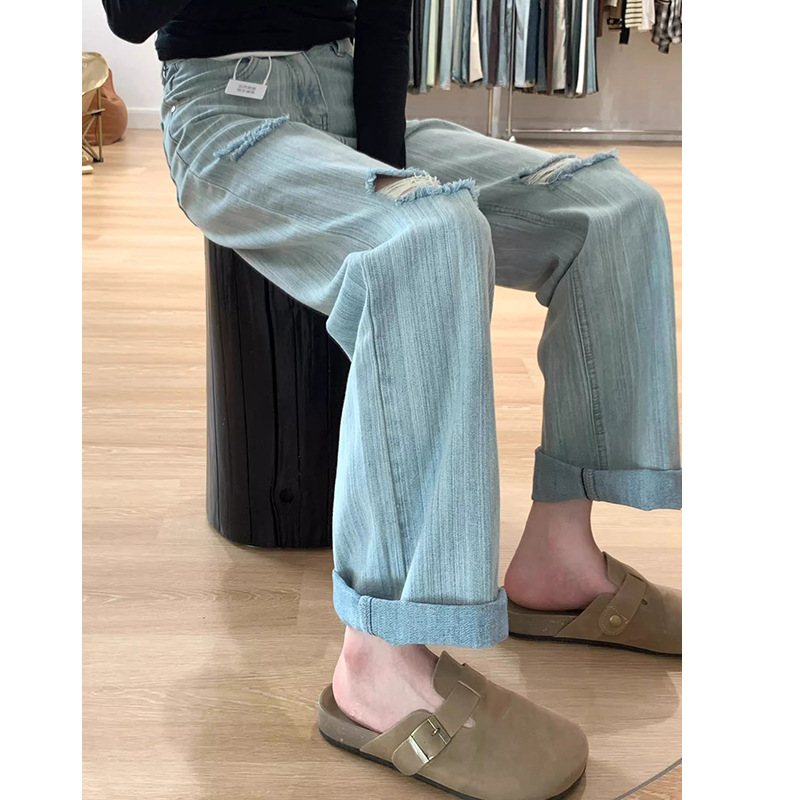 牛仔裤女夏季薄款胖mm大码显瘦裤子宽松破洞窄版阔腿裤高腰直筒裤