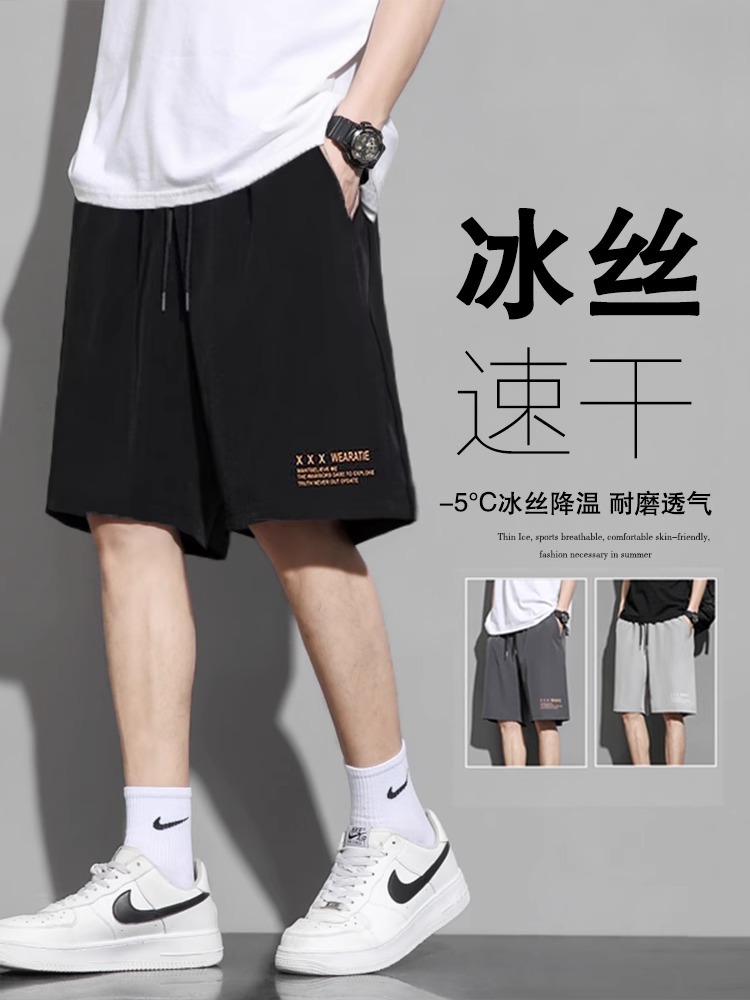 短裤男士夏季冰丝速干裤子五分裤休闲运动裤衩男生沙滩裤薄款穿搭