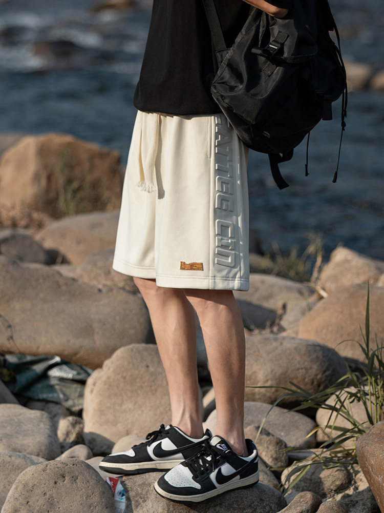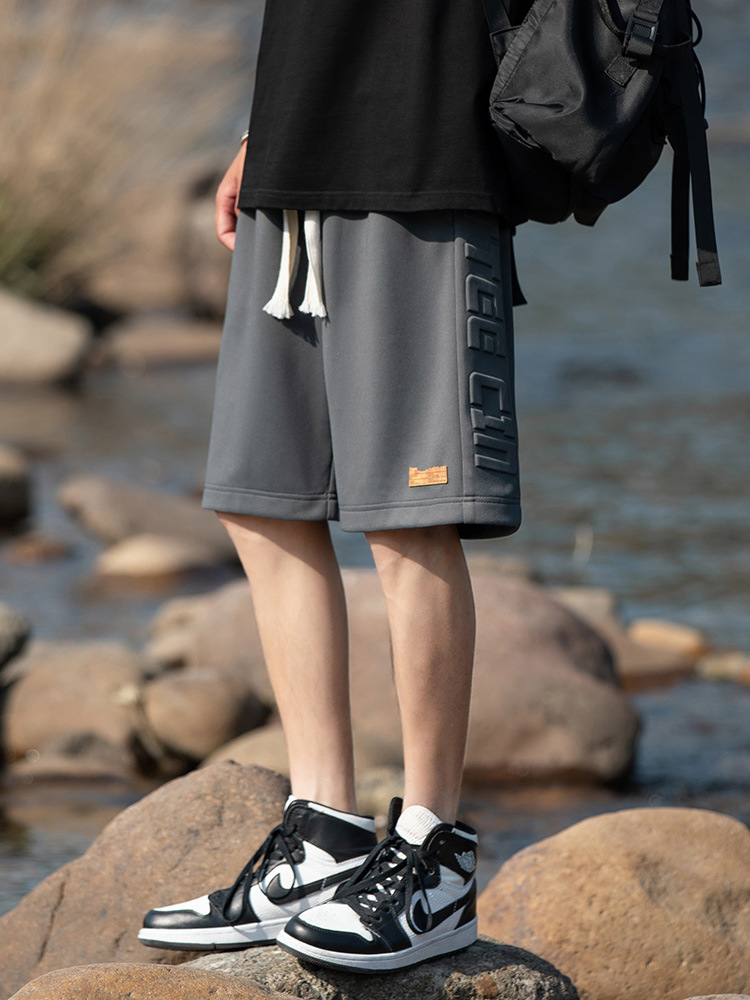 夏季薄款短裤男士日系潮牌钢印直筒中裤男生运动宽松休闲五分裤子