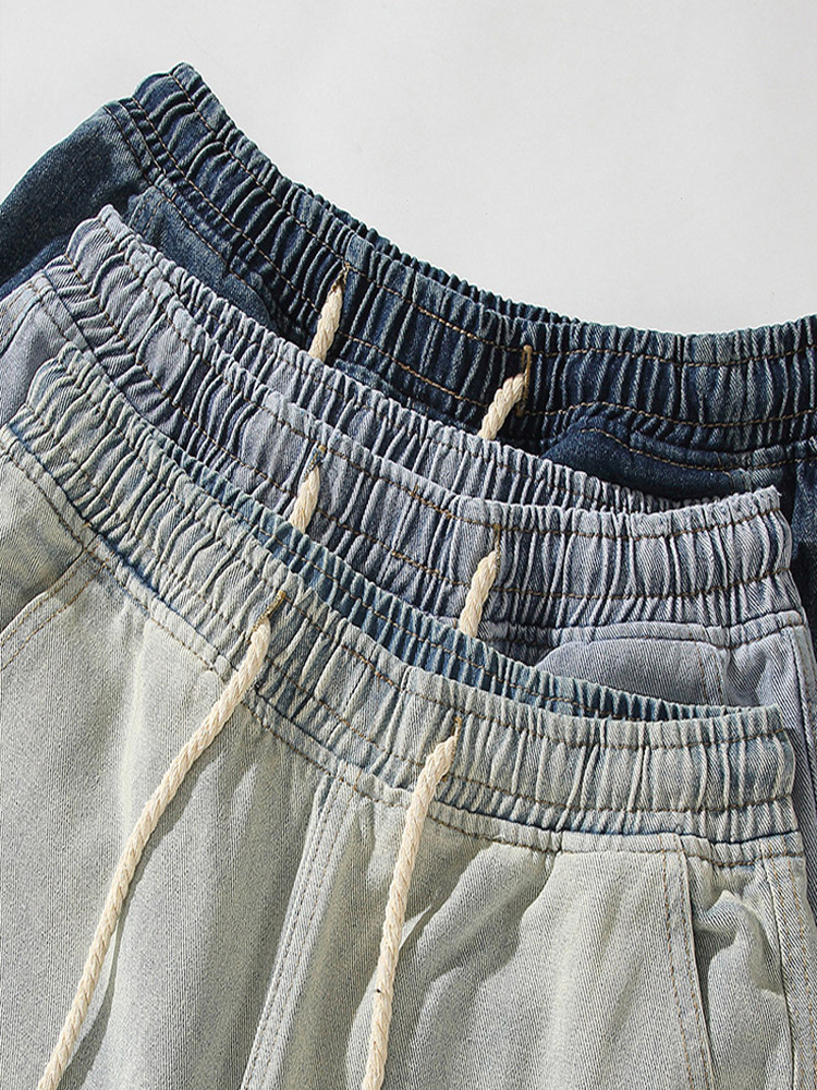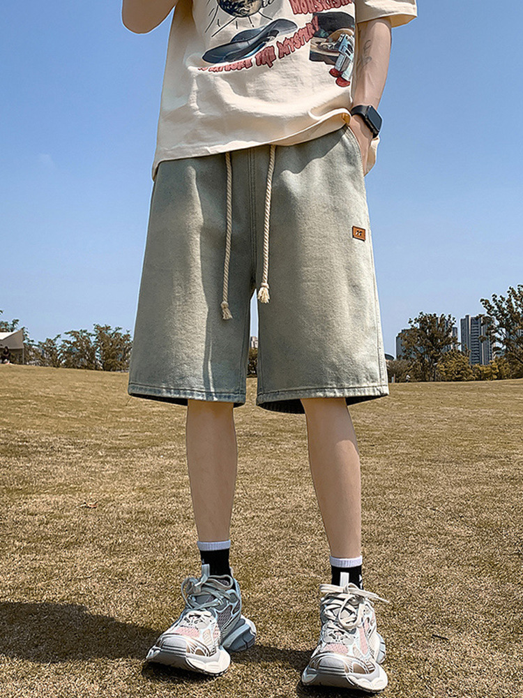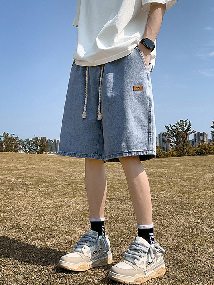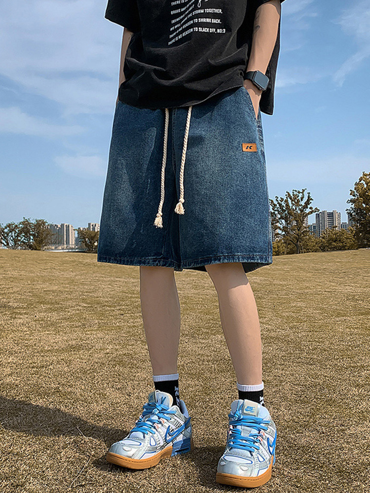 牛仔短裤男士夏季薄款潮牌宽松直筒休闲中裤男生美式五分裤子男款
