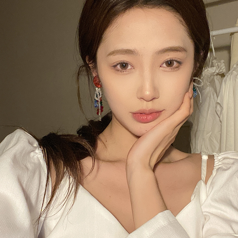 红色爱心花朵串珠耳环春夏彩色水晶甜美蝴蝶结耳坠个性气质耳饰品