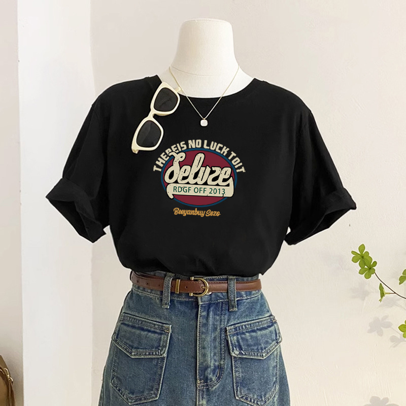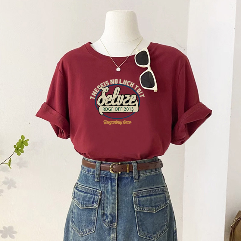 港风复古字母短袖t恤女夏季新款正肩红色薄款上衣百搭体恤潮