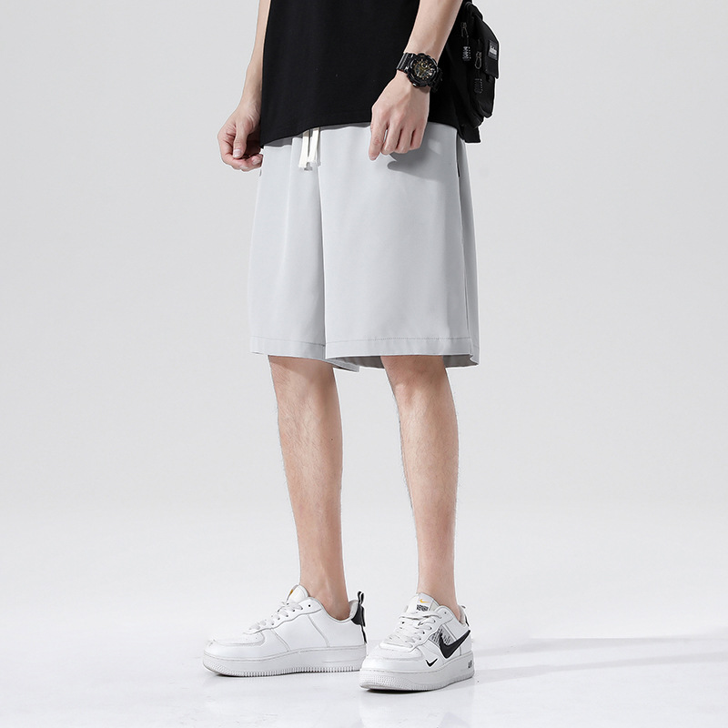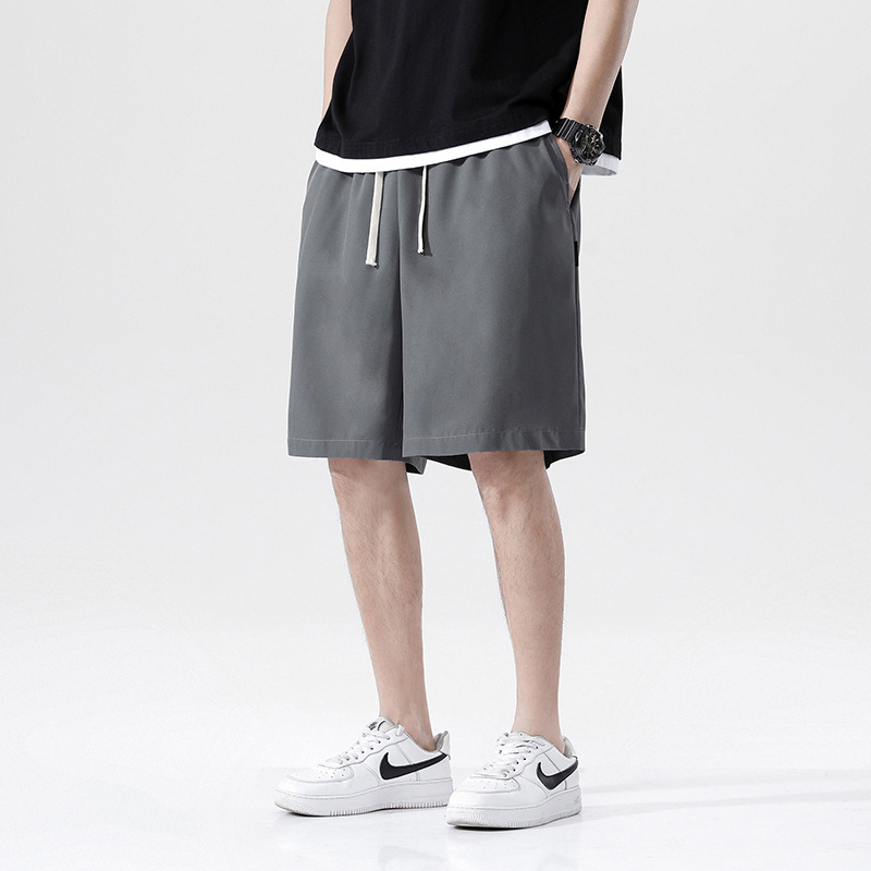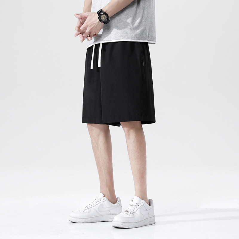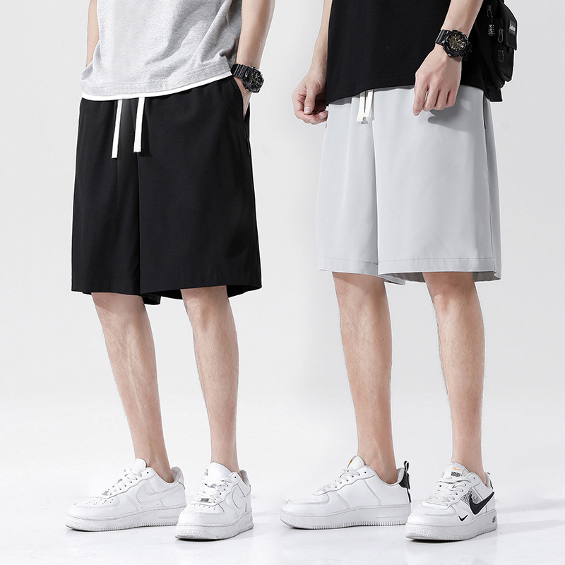 休闲冰丝短裤男士夏季新款潮流宽松纯色直筒运动薄款五分男裤