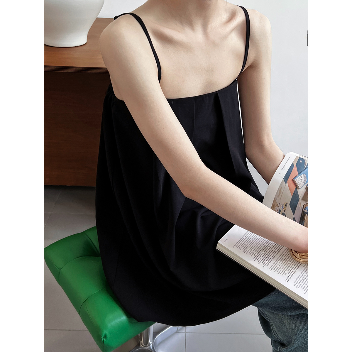 纯色抹胸吊带背心女新款夏季外穿宽松无袖A字娃娃衫