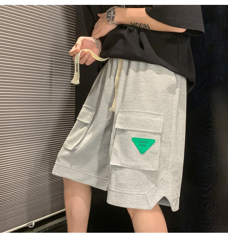 男女同款华夫格工装裤男美式复古裤子夏季薄款胖子大码运动五分裤