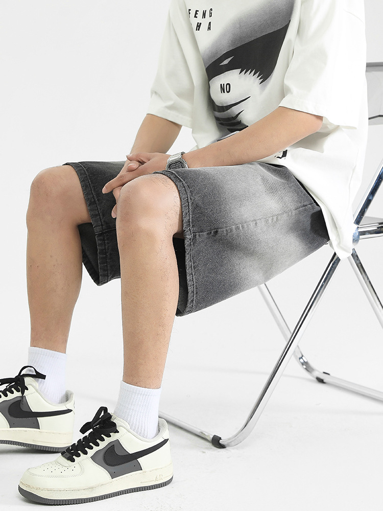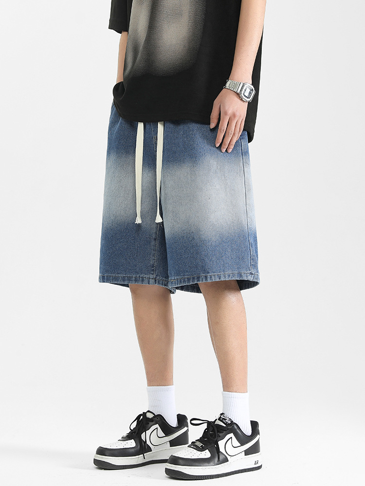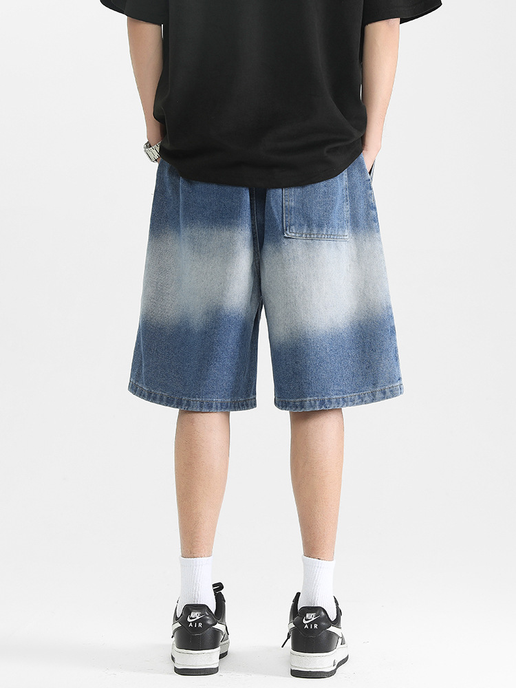 港风日系渐变牛仔短裤男士夏季宽松外穿薄款中裤子男款五分休闲裤