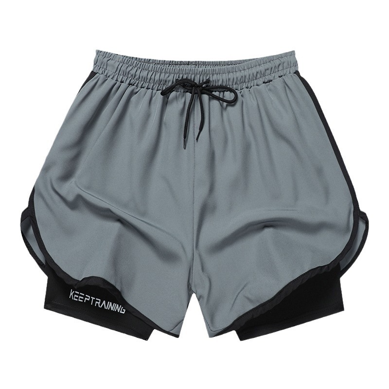 运动短裤男美式健身跑步裤内衬假两件训练防走光三分篮球休 闲短