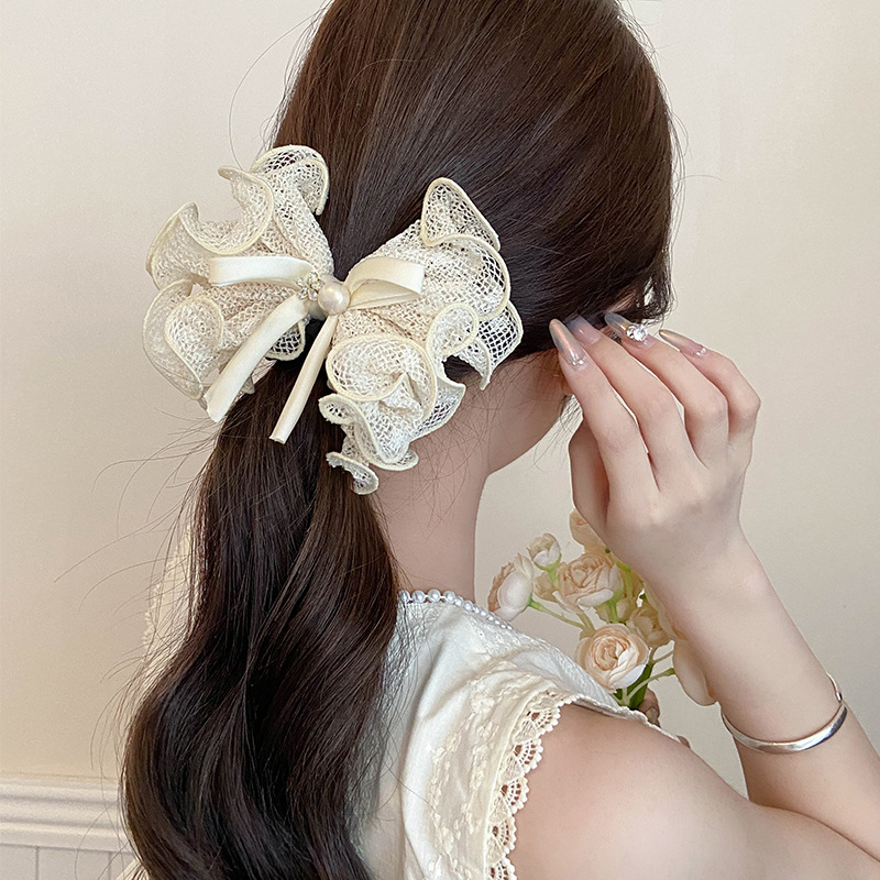 法式复古温柔蕾丝蝴蝶结大肠发圈高级感清新发绳新款头饰发饰头花