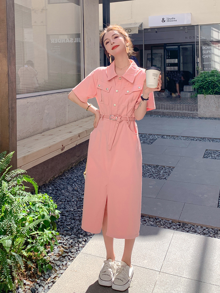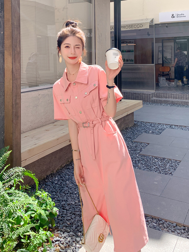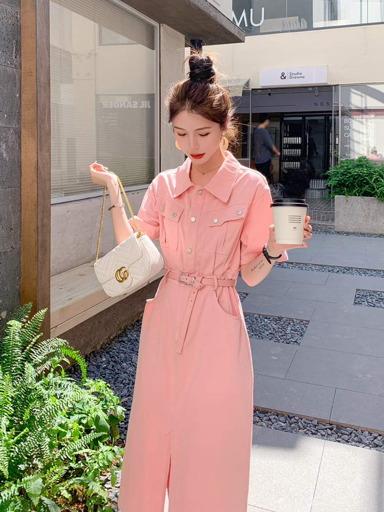 粉色设计感开叉牛仔连衣裙女夏装新款高端精致小众法式裙子