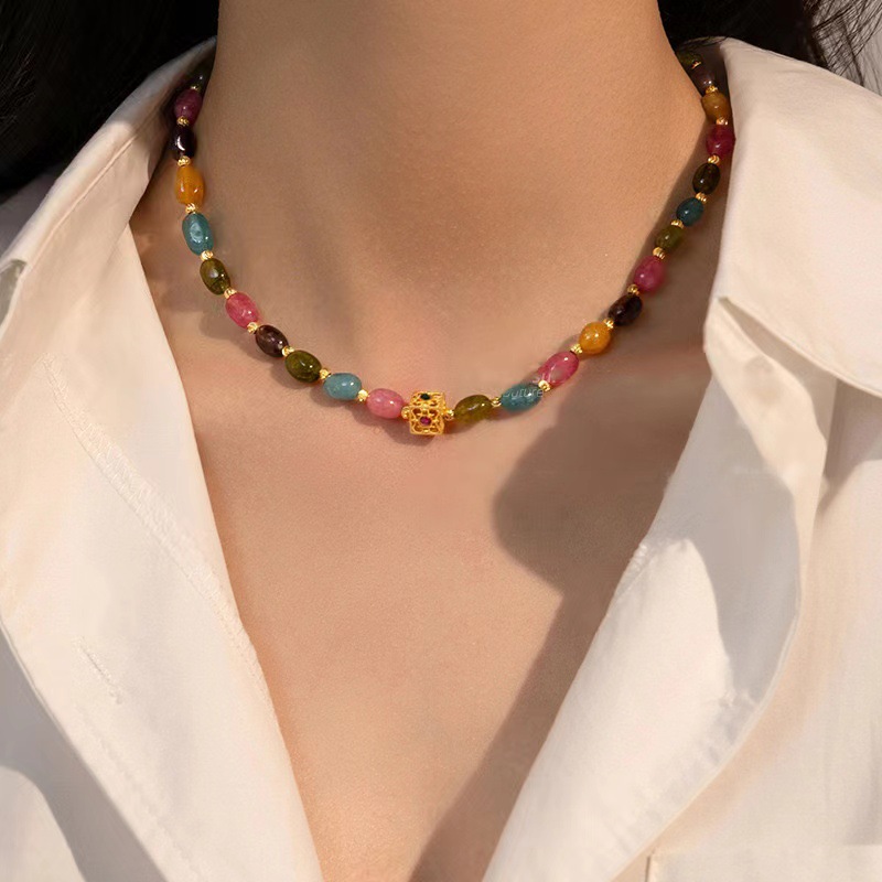 夏日小清新彩色手链项链套装清新甜美百搭锁骨链时尚文艺饰品女