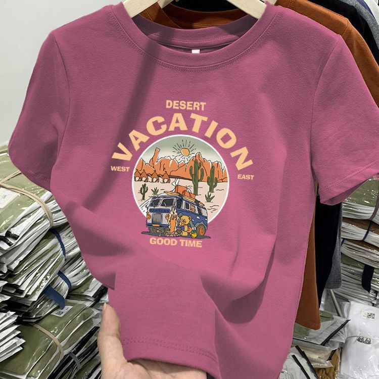 春夏新款正肩磨毛纯棉短袖T恤女时尚百搭减龄显瘦上衣打底衫