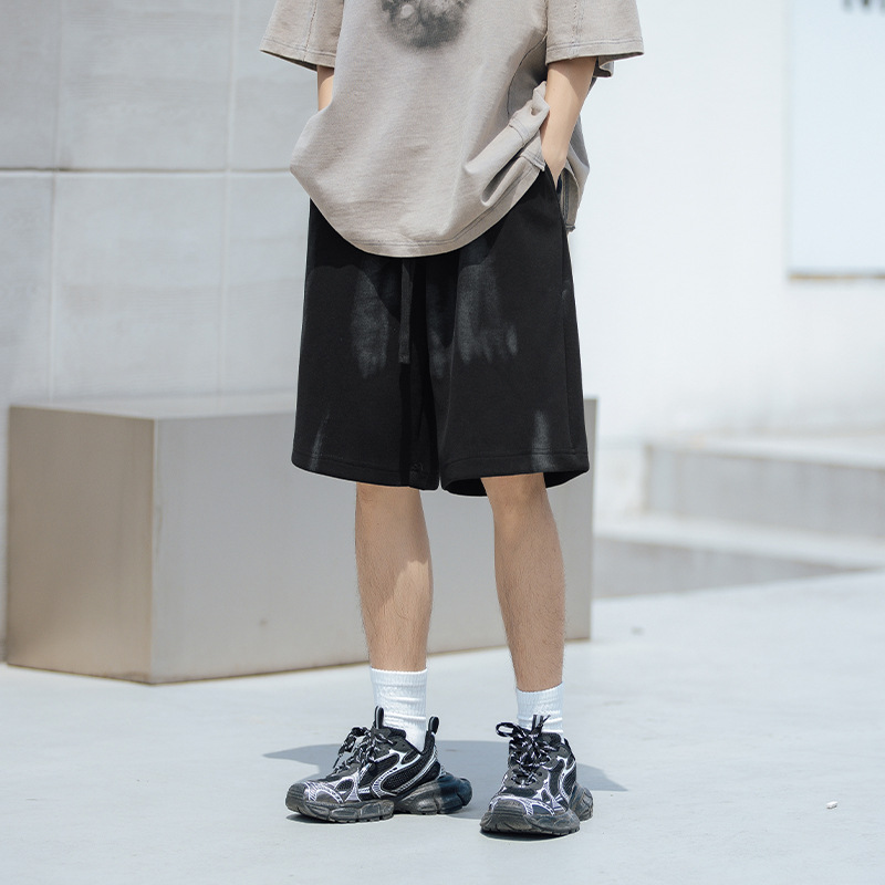 美式潮牌擦脏做旧印花短裤男夏新款复古休闲宽松五分裤