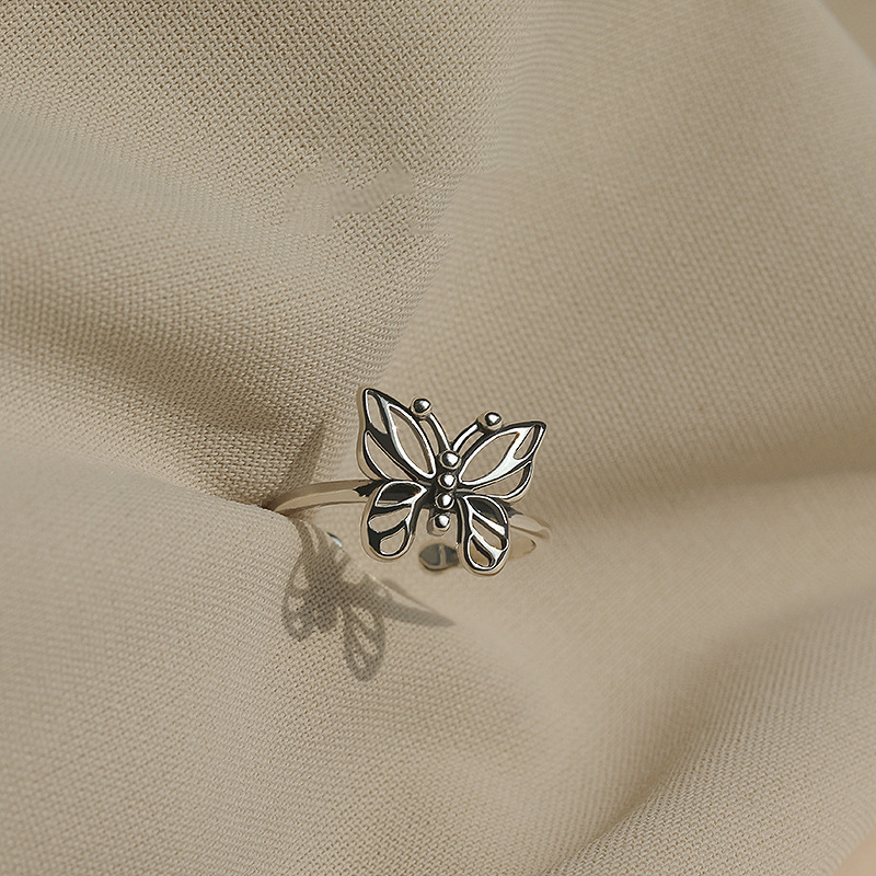 新品森系蝴蝶戒指女小众设计感轻奢食指戒尾戒百搭热卖开口戒