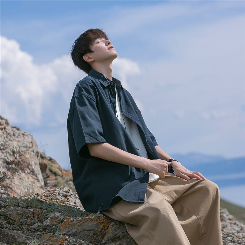 cityboy复古衬衫男夏季薄款潮流短袖衬衣设计感小众阿美咔叽外套