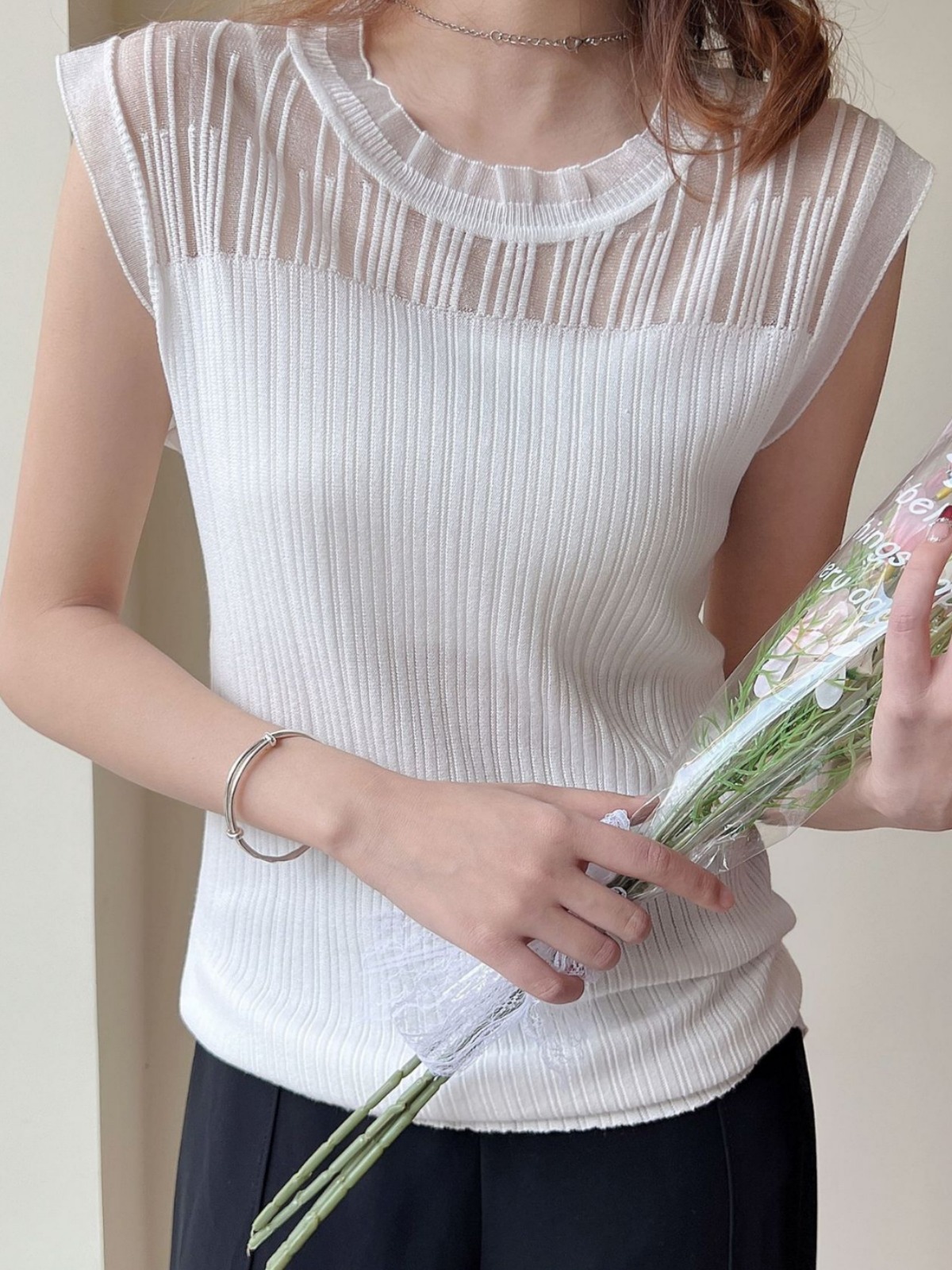 年新款夏季冰丝短袖T恤女欧根纱小飞袖蕾丝短袖打底衫上衣女