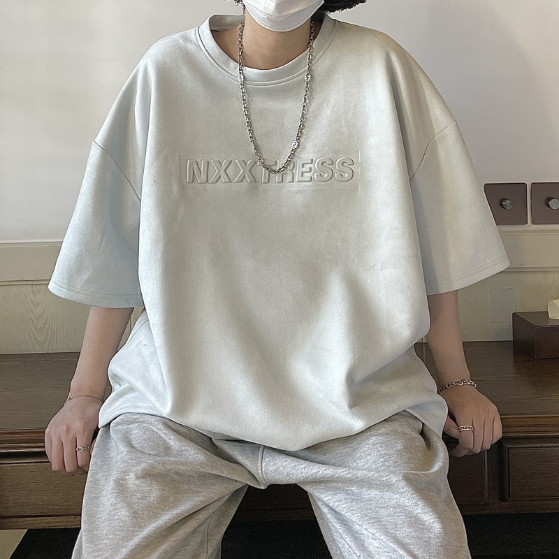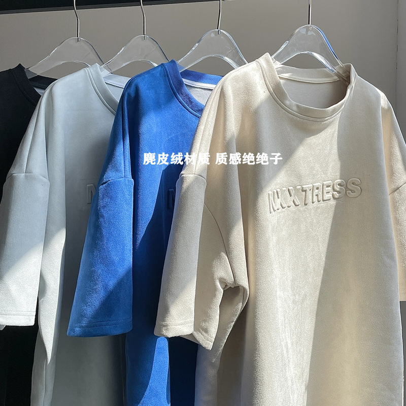 麂皮绒重磅T恤男夏季ins潮牌大码高级感260g短袖美式宽松半袖体恤