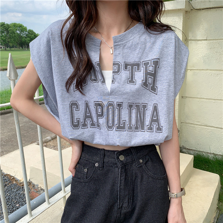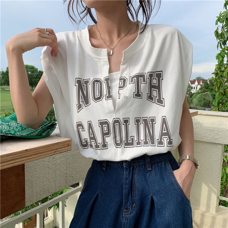 吊带女夏季外穿短款新款假两件宽松无袖t恤背心欧美上衣服