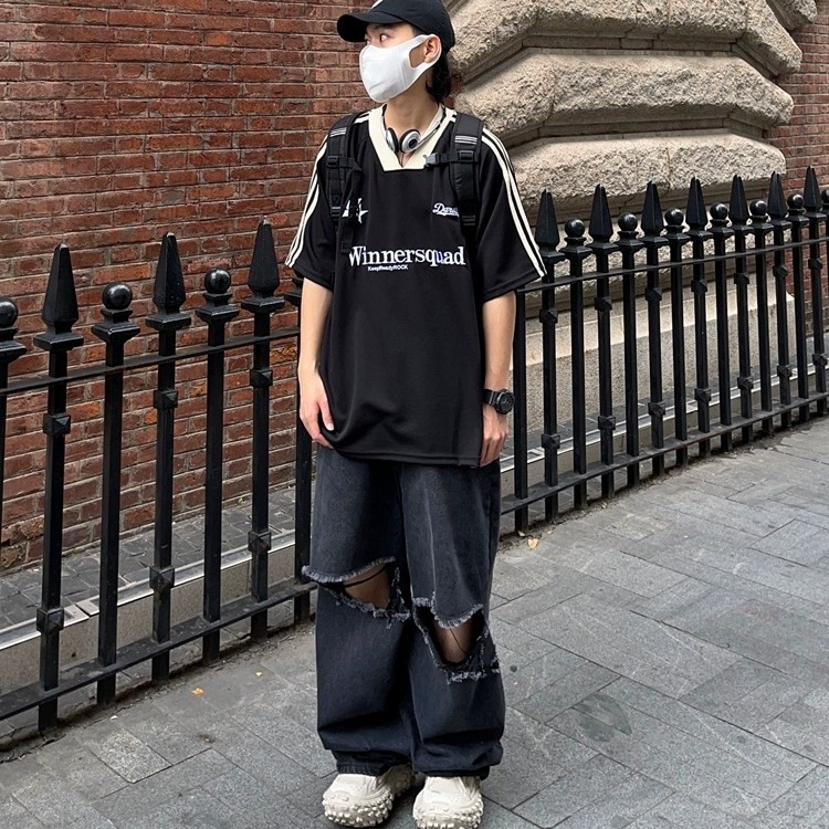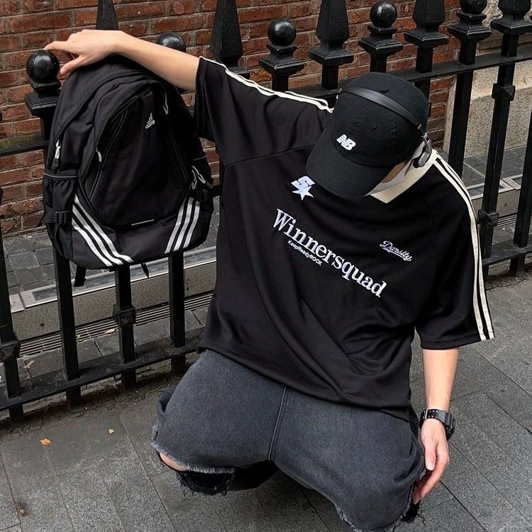 美式高街复古赛车v领短袖T恤男女宽松刺绣休闲情侣运动球衣半袖潮