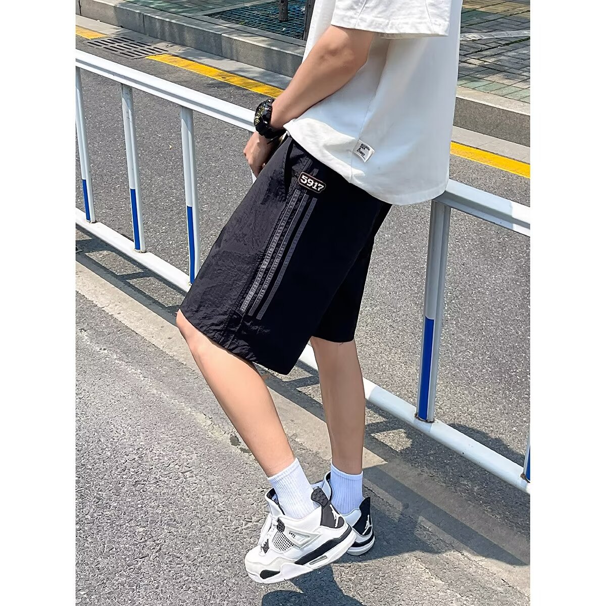 夏季薄款透气条纹速干短裤男生休闲工装五分裤户外美式运动沙滩裤