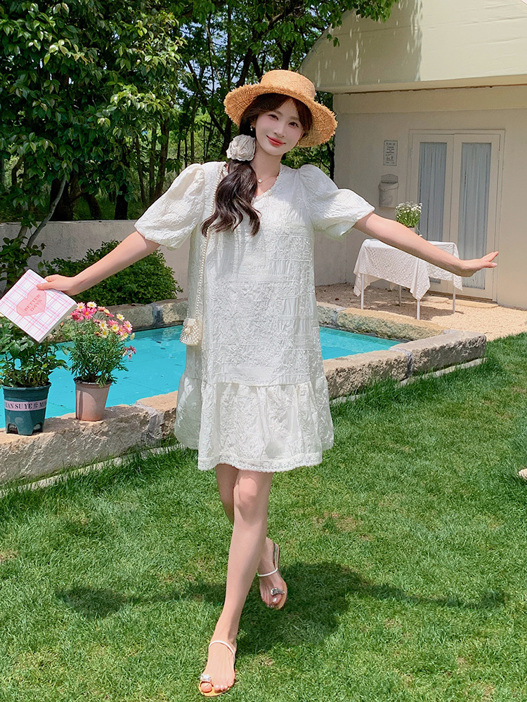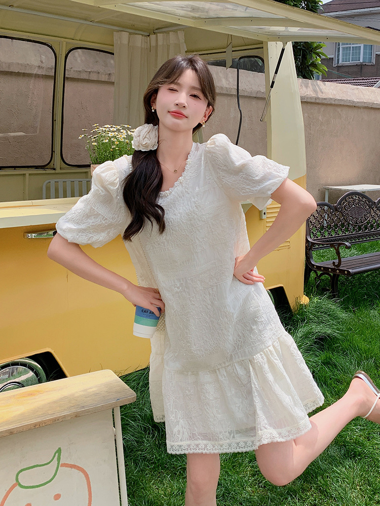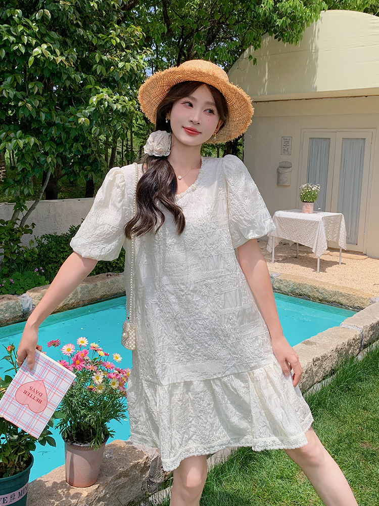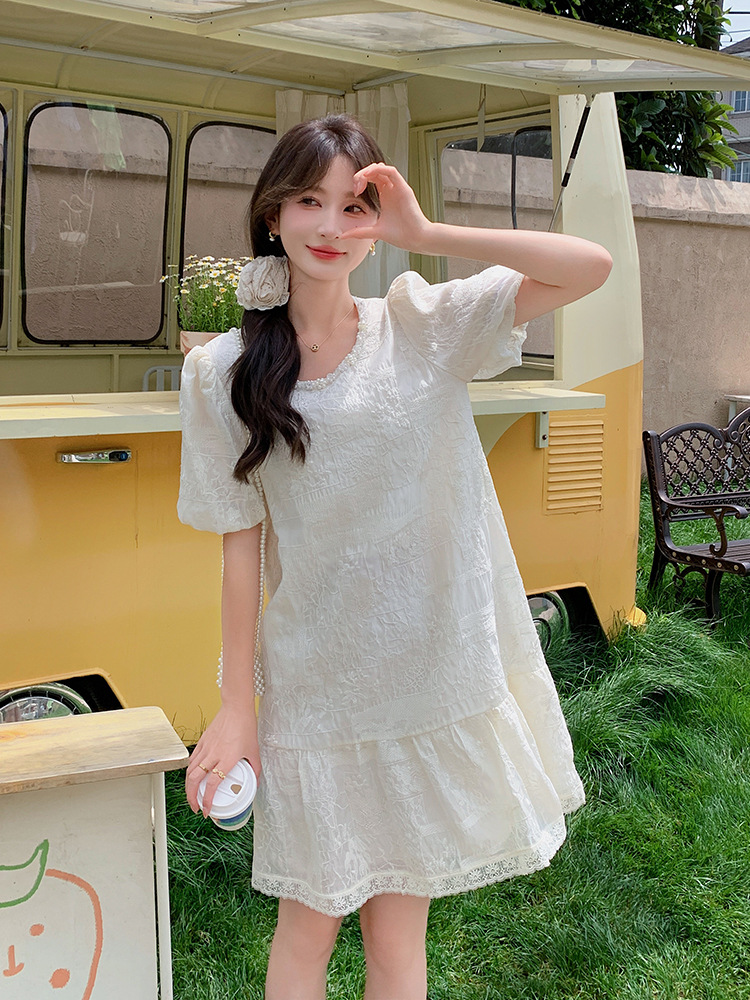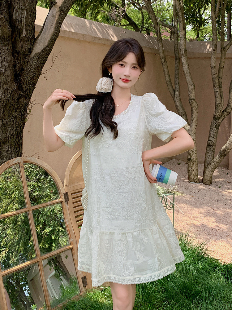 高级感重工钉珠提花刺绣小个子连衣裙女夏季新款法式蕾丝娃娃裙子