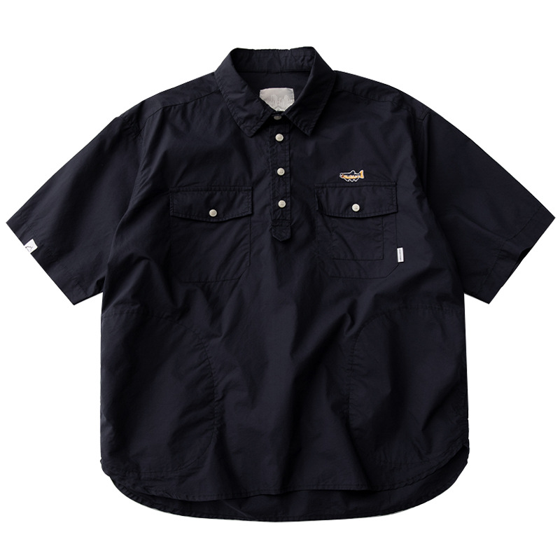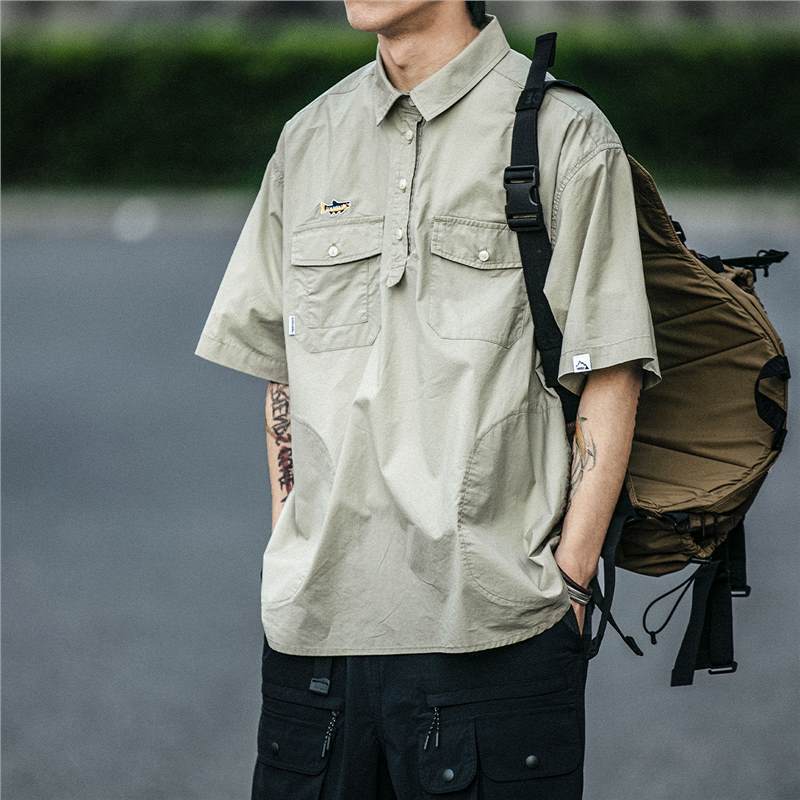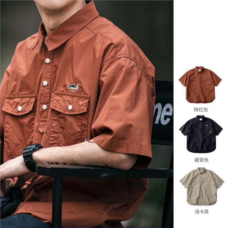 夏季日系复古工装POLO领短袖衬衫男潮牌高级感休闲T恤ins半袖衬衣